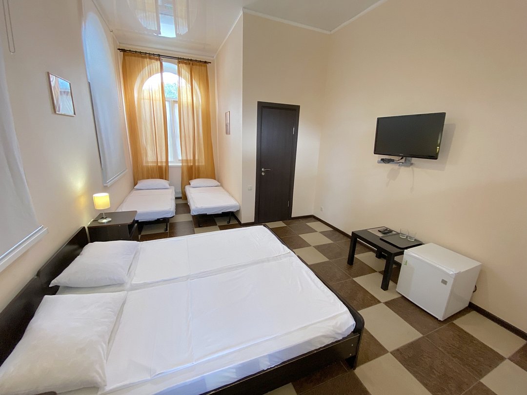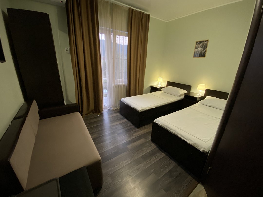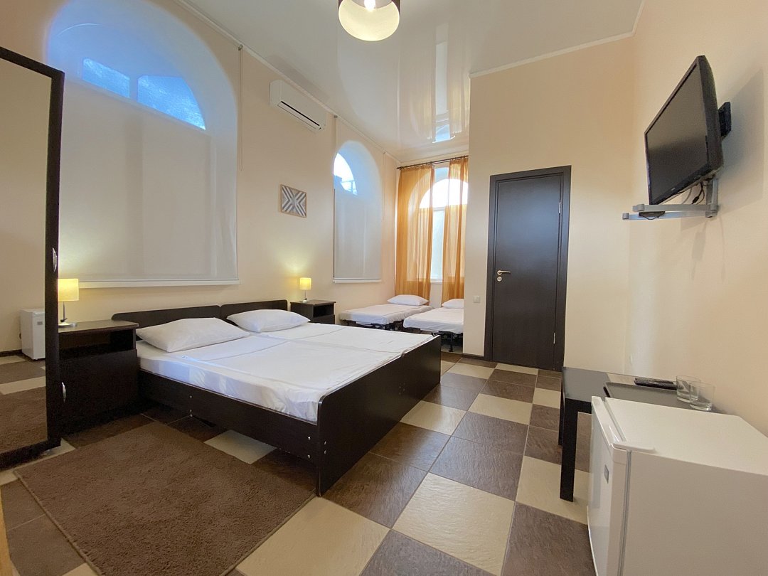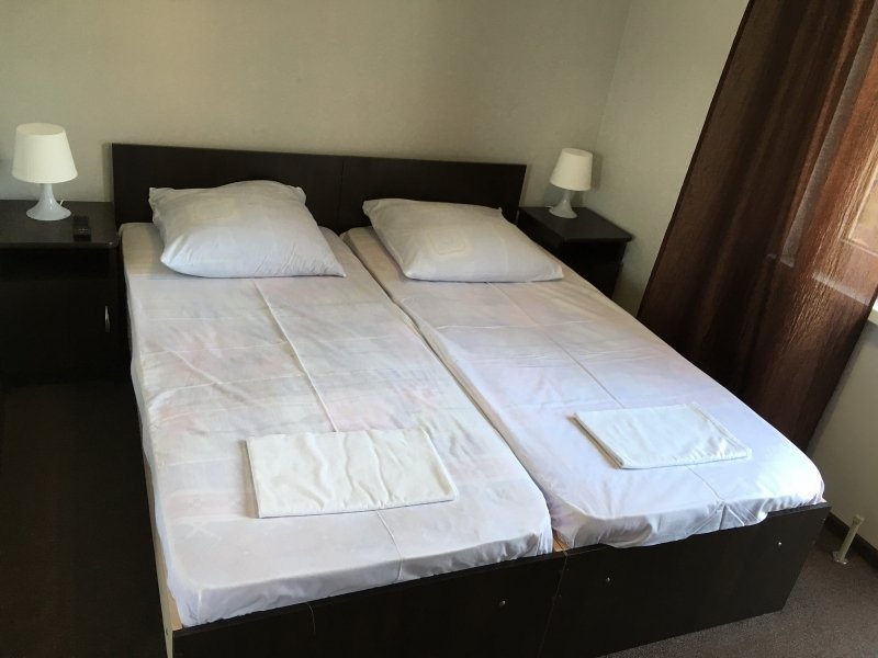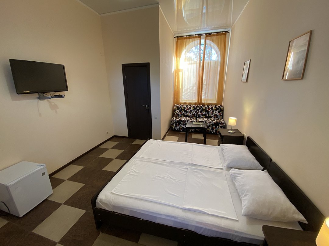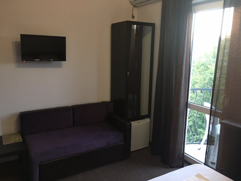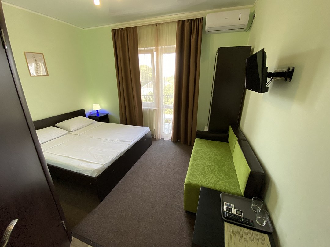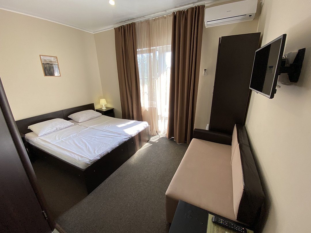 Номера Стандарт расположены на II этаже. Размещение в номере 2-3 человека. Размер номера 16 м2. В номере: две односпальные кровати 90х200 см, раскладной диван 70х190 см, две прикроватные тумбочки, шкафчик для одежды, журнальный столик, сейф. В номере есть: мини-холодильник, сплит, плазменный телевизор. Санузел в номере: душ, туалет, умывальник, фен. Во всех номерах работает бесплатный интернет Wi-Fi. Во все номера предоставляется комплект полотенец и постельного белья. Возможно раздельное расположение кроватей. На окнах москитные сетки и шторы блэкаут. В каждом номере есть балкон для двух человек.В номере
