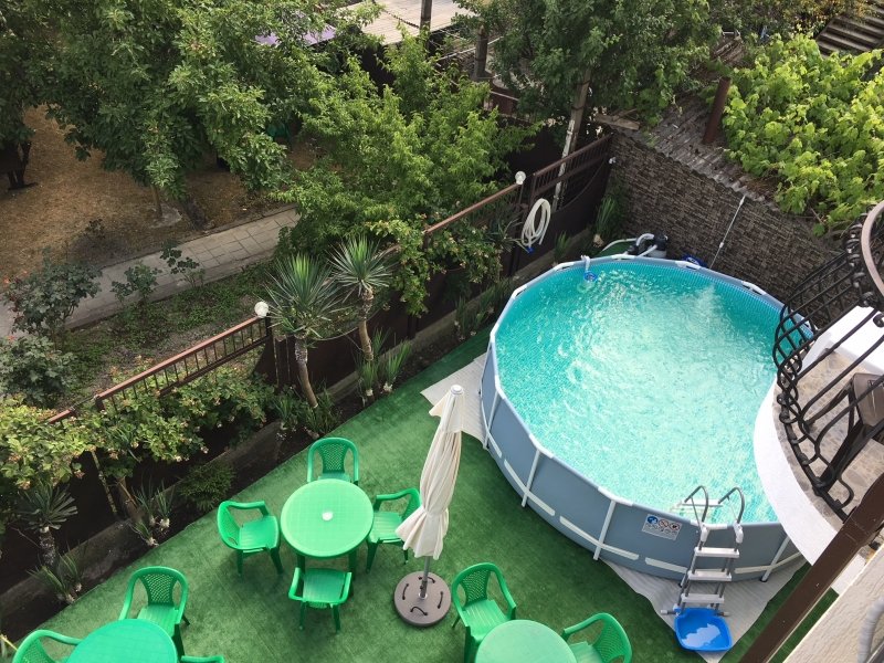 Вилла "Вишнёвая" находится в тихом месте, где нет шума от машин, дискотек и толп отдыхающих. К услугам наших гостей бесплатная парковка, кухня, площадка для отдыха в тени фруктовых деревьев с мангалом и павильоном. Для детей детская площадка и каркасный бассейн.
