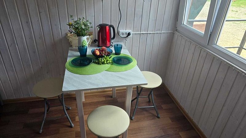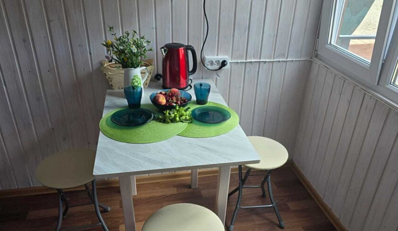 Небольшой дом со всеми удобствами, с балконом, где можно вечерами любоваться закатами и приятно проводить время.