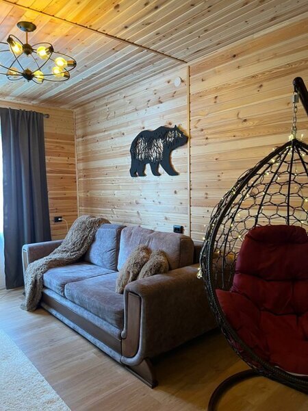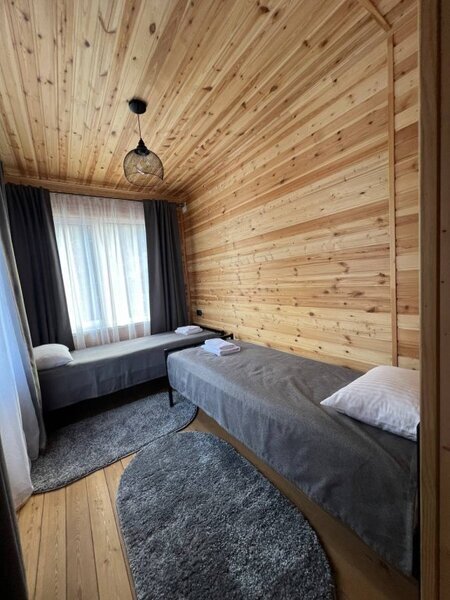 Вместительный коттедж на шесть человек оснащен тремя спальнями, ванной комнатой, кухней и гостиной. Для комфорта гостям предоставляется постельное белье, набор полотенец, гигиенические средства, имеется камин, телевизор, Wi-Fi.