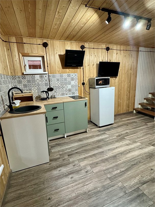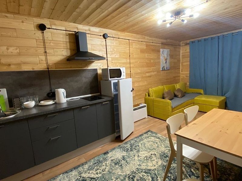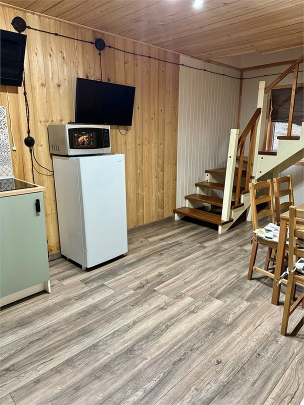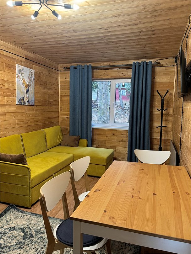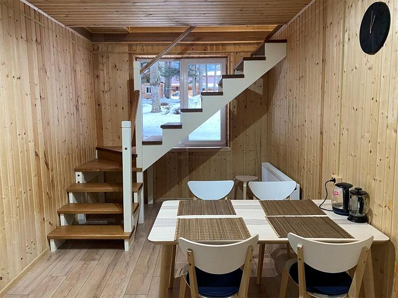 Двухэтажный коттедж 72м2 вмещает от 2 до 6 человек. В коттедже имеются две изолированные спальни на разных этажах и кухня.Услуги и удобства
