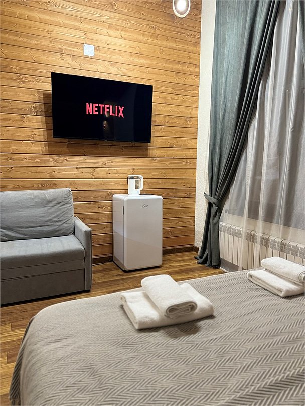 Дизайнерский номер на 2-х с большим окном порадует наших гостей своим комфортом. В номере имеется все для проживания.Услуги и удобства