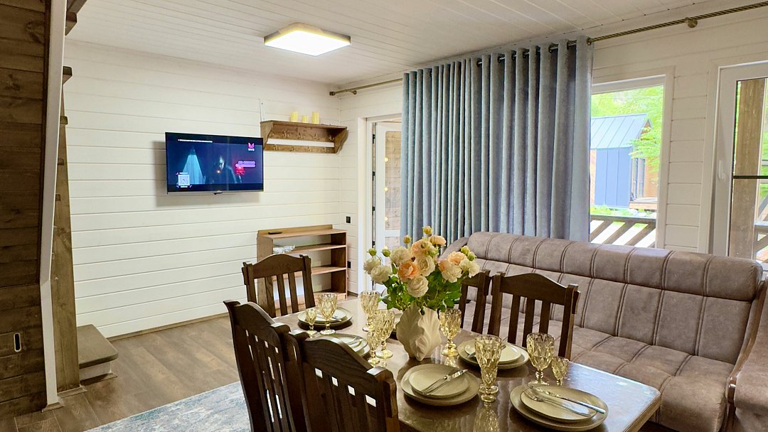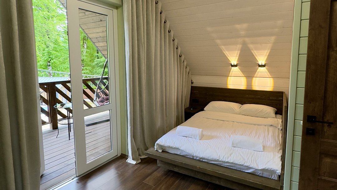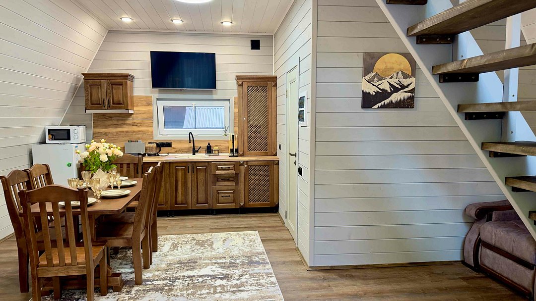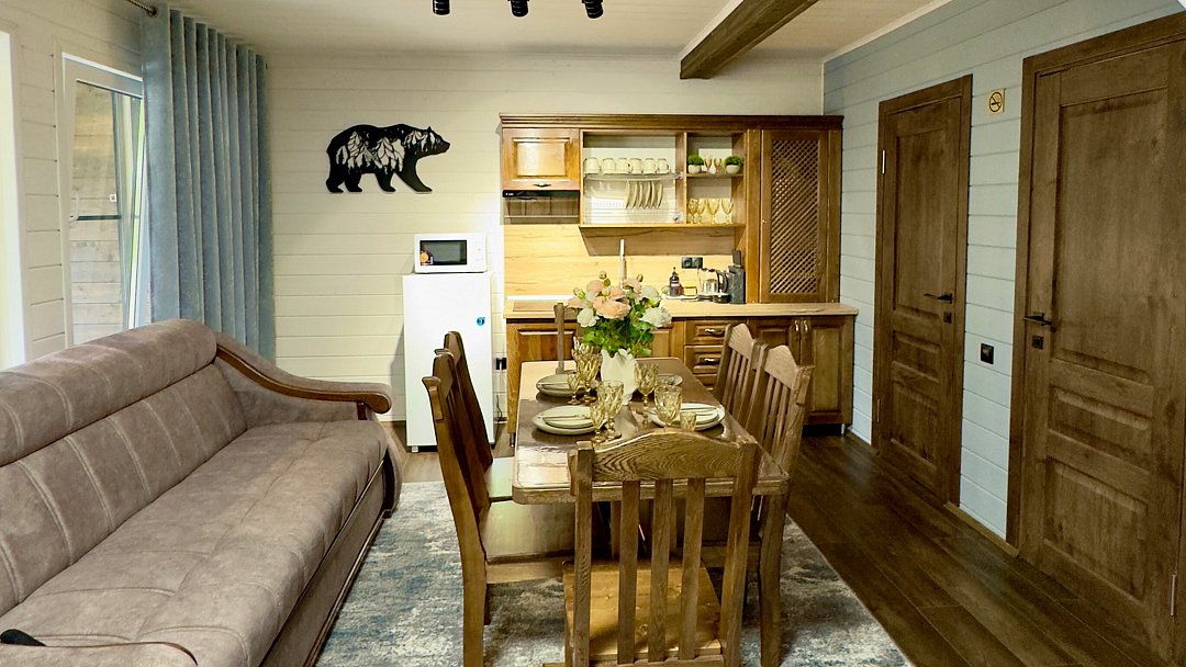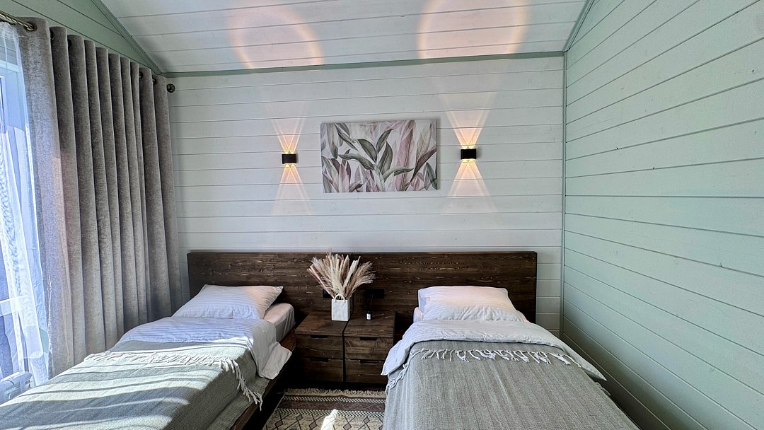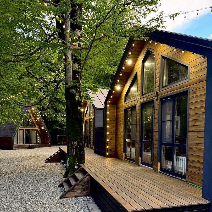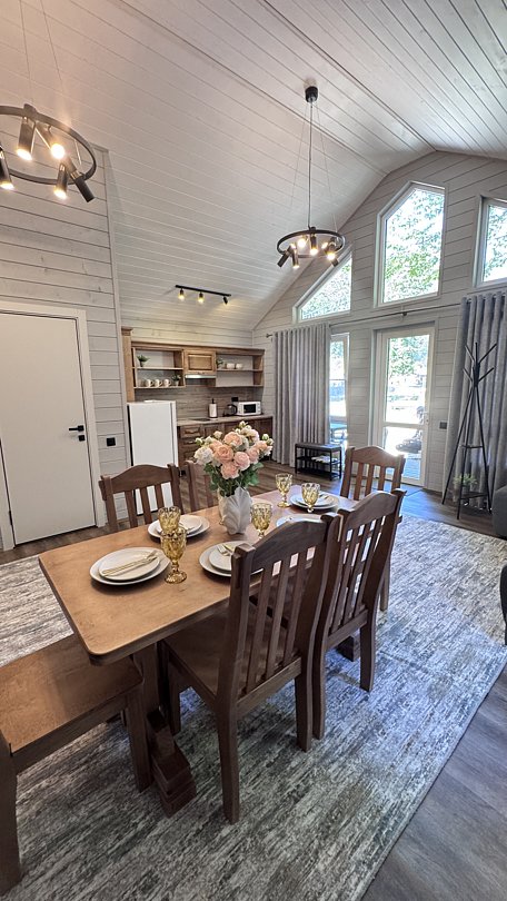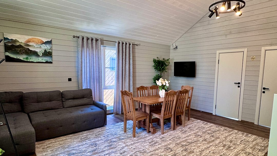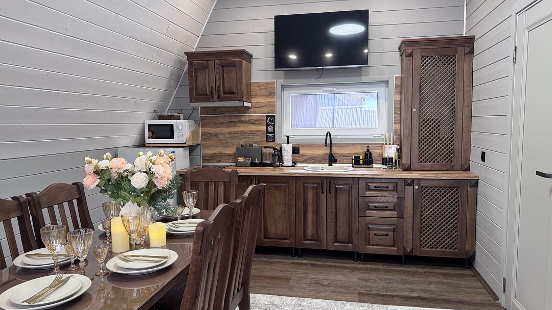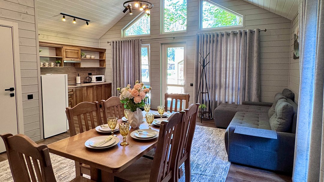Стильные барнхаусы и домик А-фрейм полностью оснащены всем необходимым для отличного отдыха. В каждом доме есть кухня, оборудованная бытовой техникой и набором посуды, телевизор и Wi-Fi, удобные спальные места и чистое постельное белье, современный санузел с душем и гигиеническими принадлежностями.