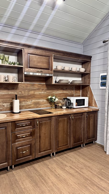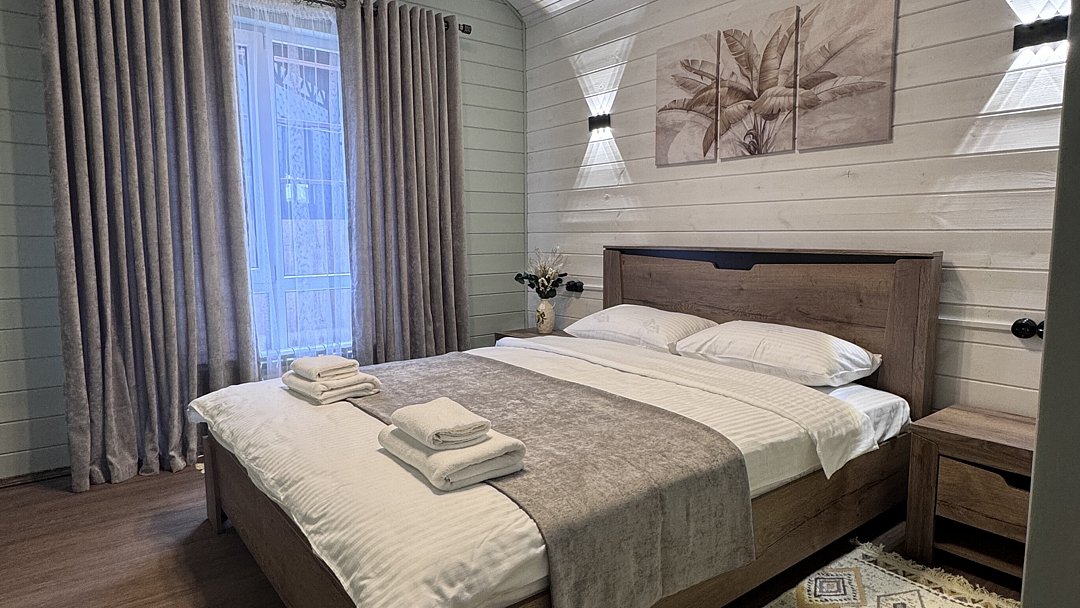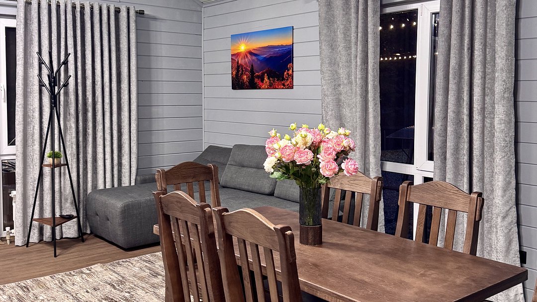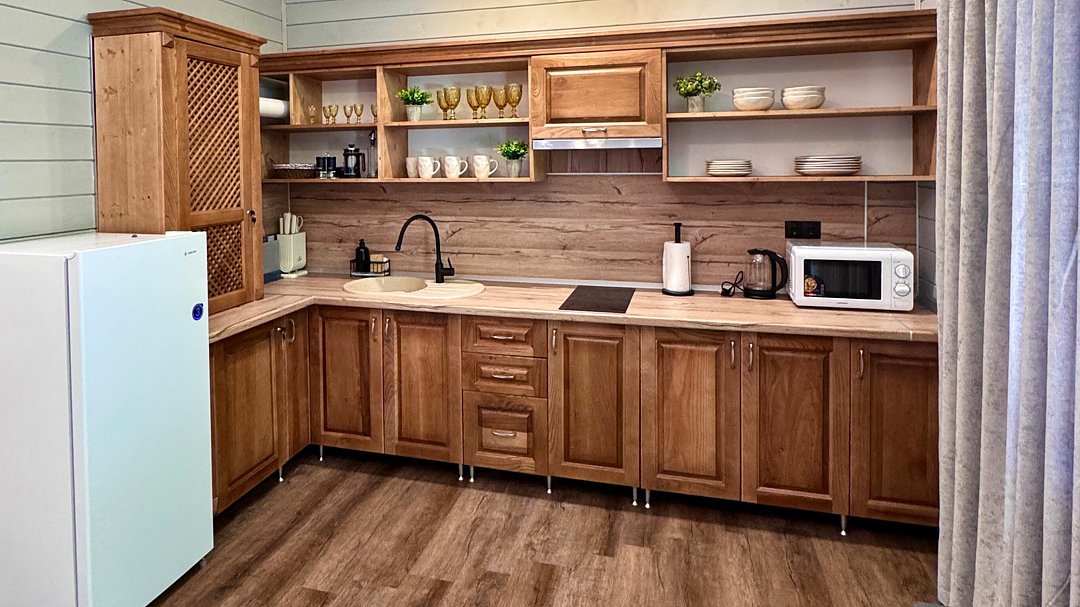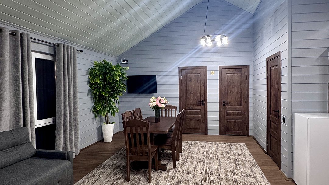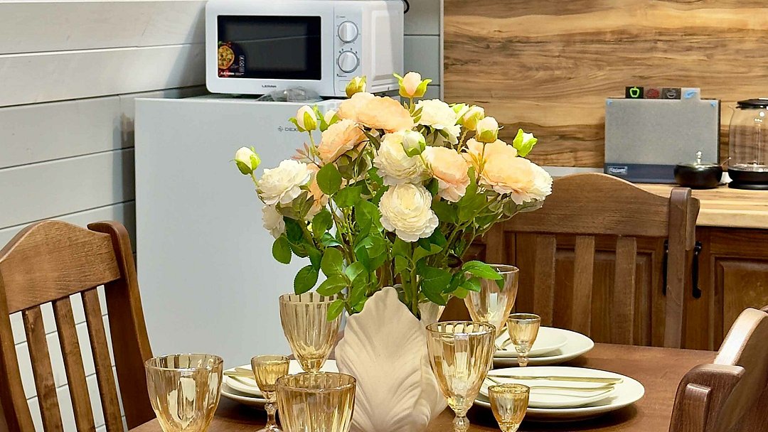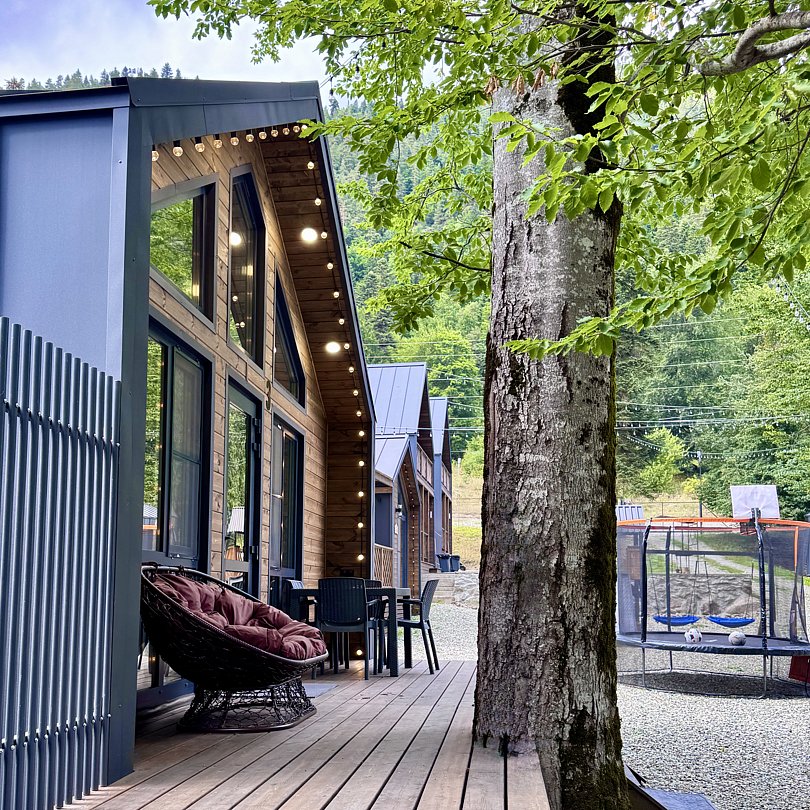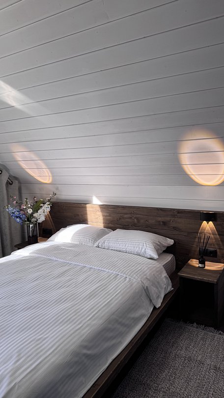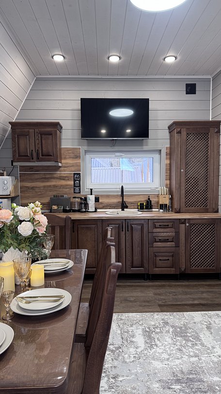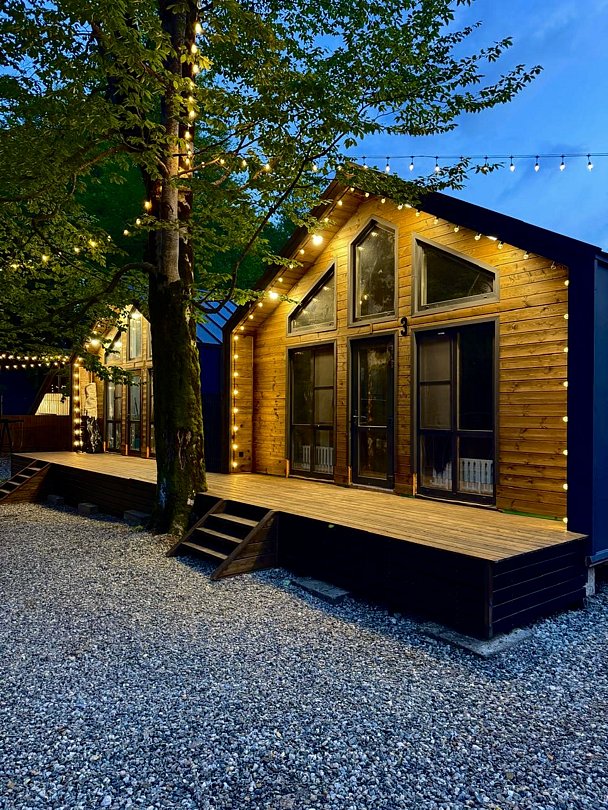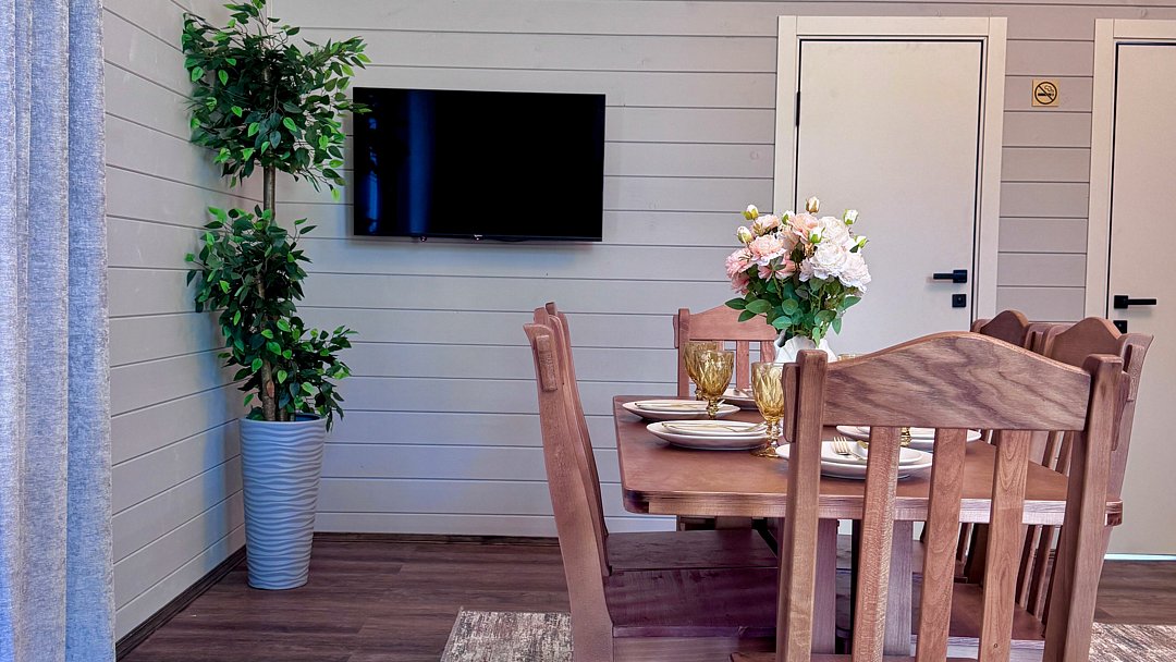 Стильные барнхаусы и домик А-фрейм полностью оснащены всем необходимым для отличного отдыха. В каждом доме есть кухня, оборудованная бытовой техникой и набором посуды, телевизор и Wi-Fi, удобные спальные места и чистое постельное белье, современный санузел с душем и гигиеническими принадлежностями.