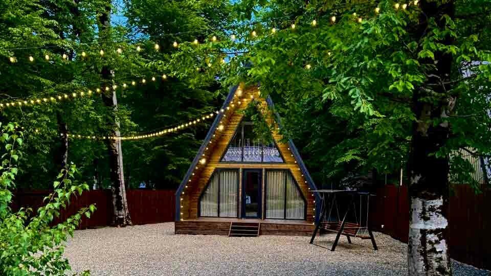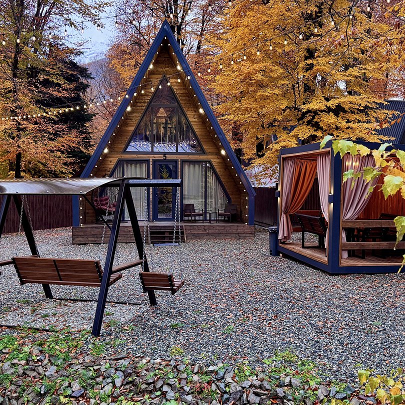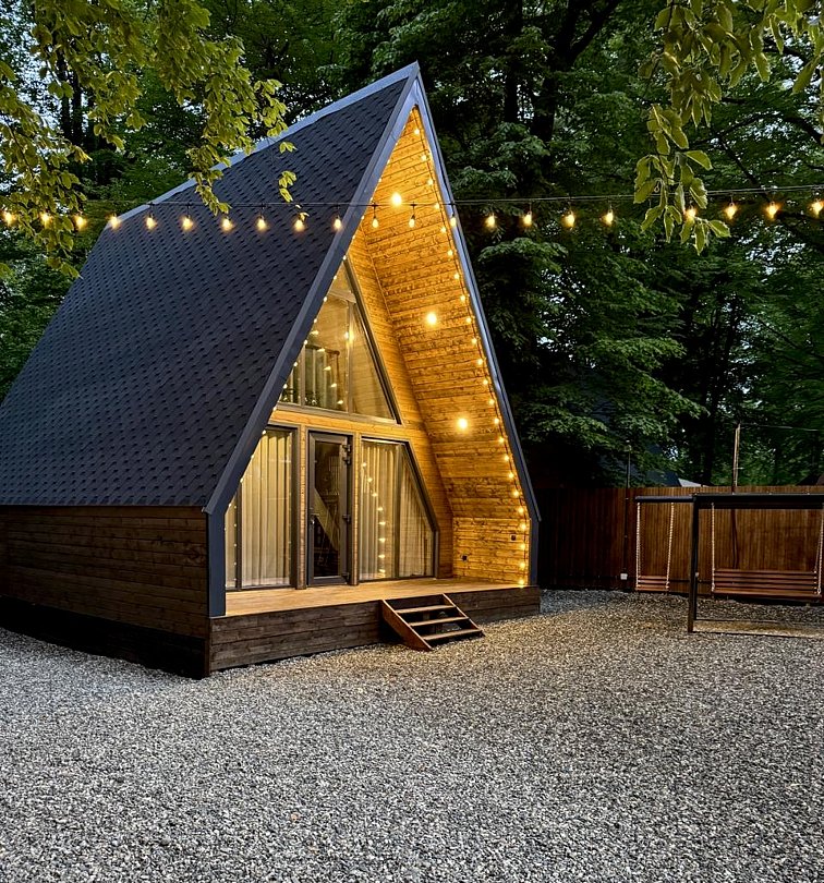 Двухэтажный А-фрейм (76 м²) до 4 человек.