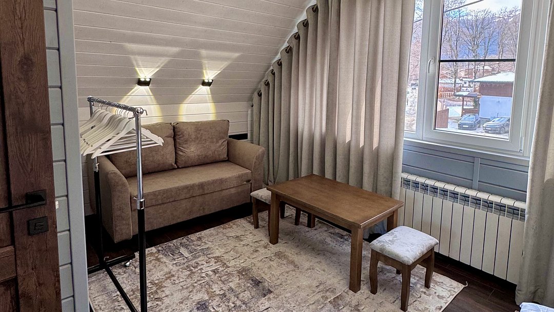 Гостей на отдыхе ждут мангальные зоны, беседка, качели, батут и горный ручей, протекающий по территории. Для малышей подготовлена детская площадка. За дополнительную плату доступна баня на дровах с купелью, экскурсии, джиппинг, конные прогулки.