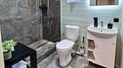 - кухня-гостиная: кухонный гарнитур, чайник, холодильник, микроволновая печь,плита,посуда,стол, стулья, двуспальный диван, телевизор, совмещённый санузел;