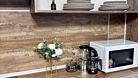 - кухня-гостиная: кухонный гарнитур, чайник, холодильник, микроволновая печь, плита, посуда, стол, стулья, двуспальный диван, телевизор, совмещённый санузел;