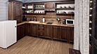 - кухня-гостиная: кухонный гарнитур, чайник, холодильник, микроволновая печь, плита, посуда, стол, стулья, двуспальный диван, телевизор;
