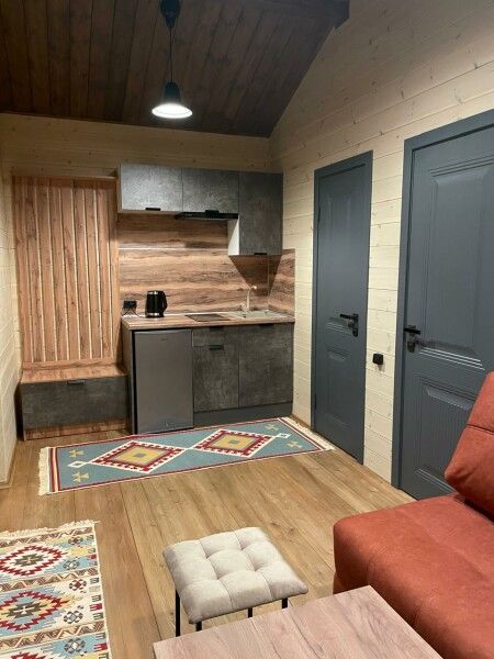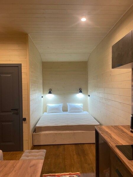 Двухкомнатный домик с отдельной спальней и кухней-гостиной.