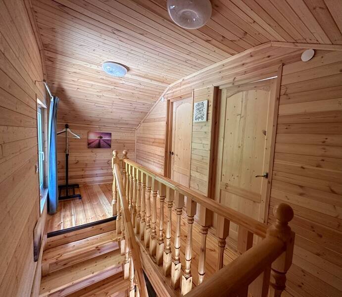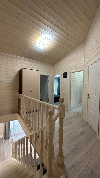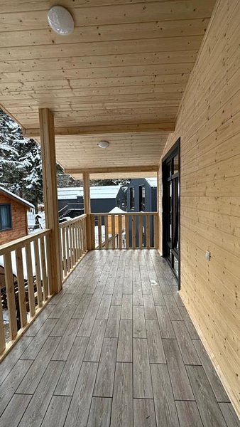 Вилла достаточно просторная, с несколькими спальнями, кухней и террасой для отдыха. В комнатах большие окна, чтобы наслаждаться панорамными видами. Внутри почти всё сделано из экологического дерева.