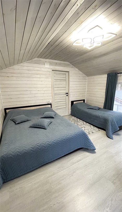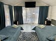 Оснащён 1 двуспальным диваном, 2 односпальными кроватями, 2 двуспальными кроватями и (1-двуспальной, 1-односпальной). Имеется комфортная ванная комната, телевизор, Wi-Fi, антимоскитная сетка, отопление, шкаф, холодильник, СВЧ, чайник, постельное белье, полотенца, мыло, обеденный, рабочий, журнальный стол, стол, стулья, кухня в номере, посуда, столовые приборы и электричеcкая плита.