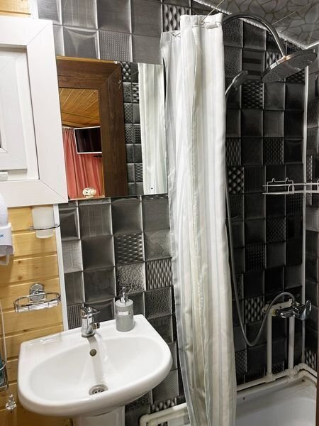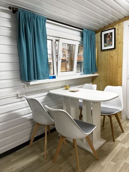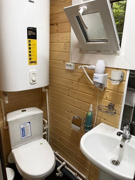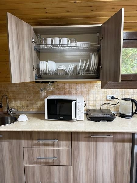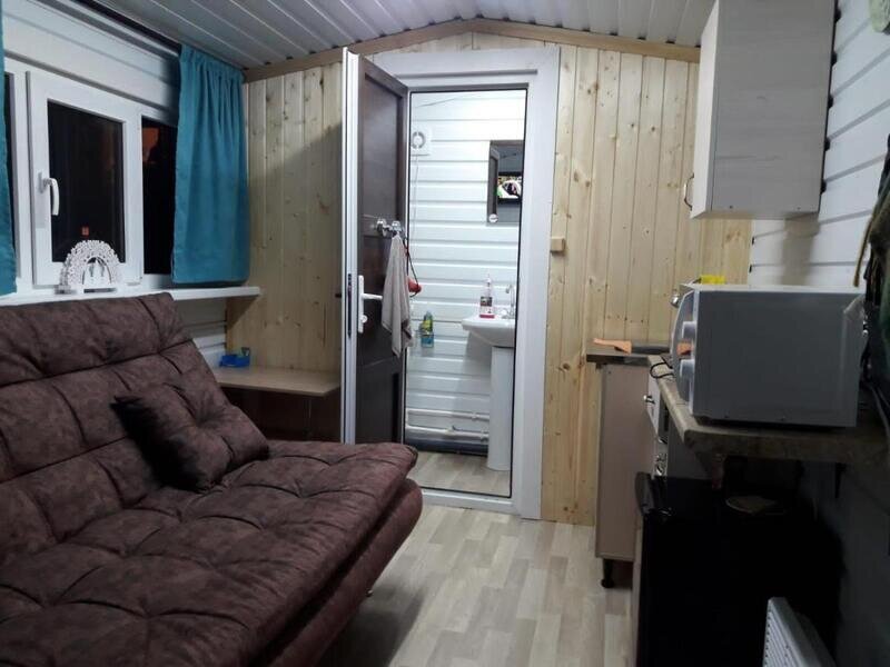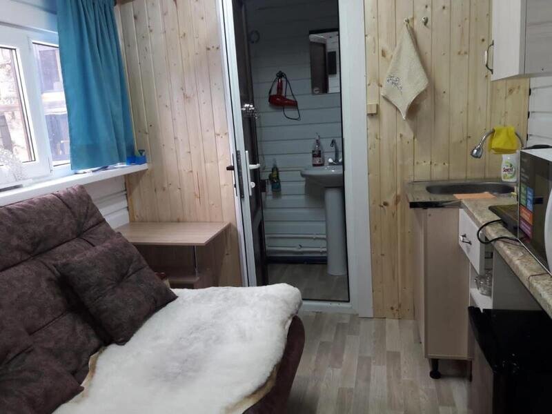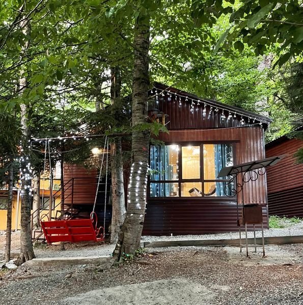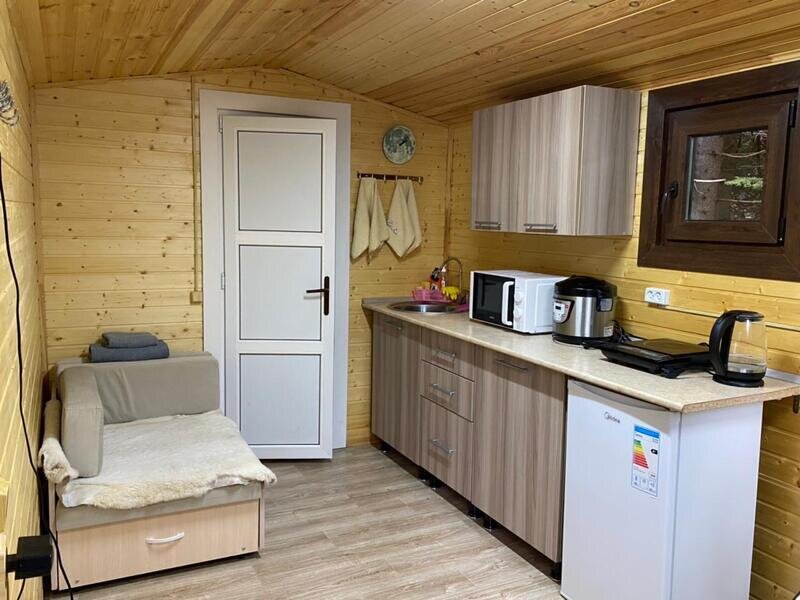 Уютный современный дом 37 кв. м. вместимостью до 4-х человек, В доме изолированная спальня, полноценная кухня. Все удобства внутри. Вода чистейшая, родниковая. К домику прилагается беседка, мангал, качели гамак.