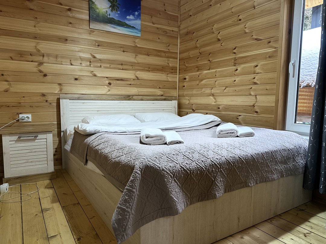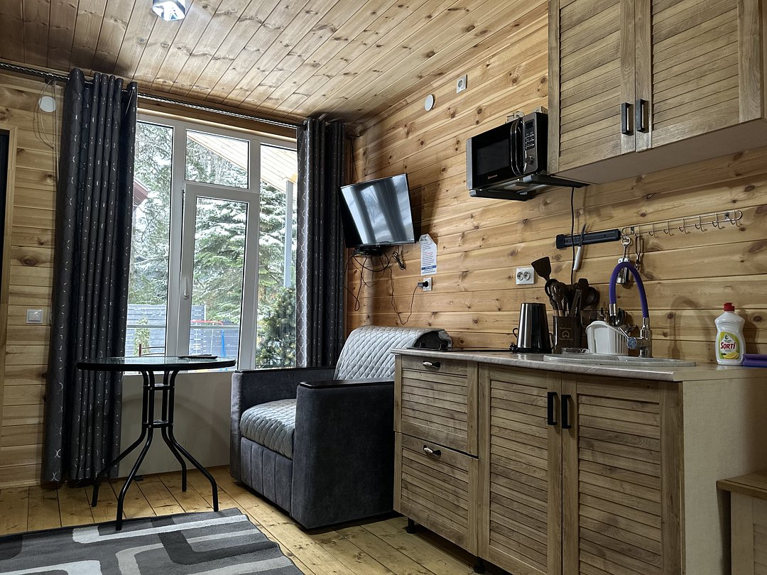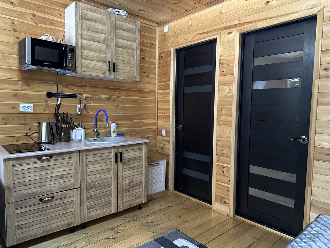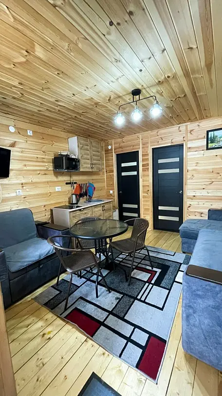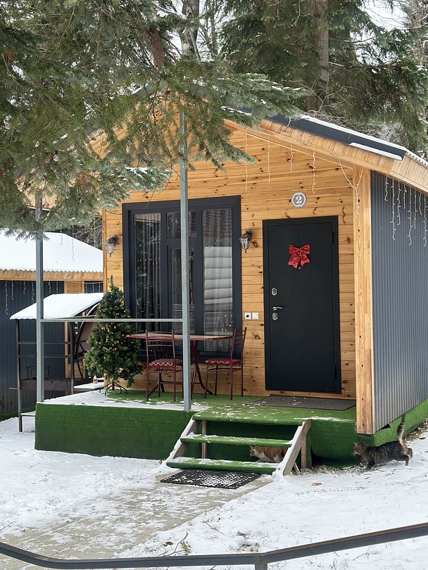 Вашему вниманию будут предложены комфортабельные домики, оснащённые всем необходимым для комфортного отдыха: спальней, гостиной, мини-кухней, техникой и телевизором.