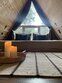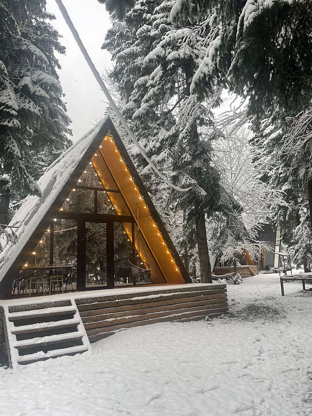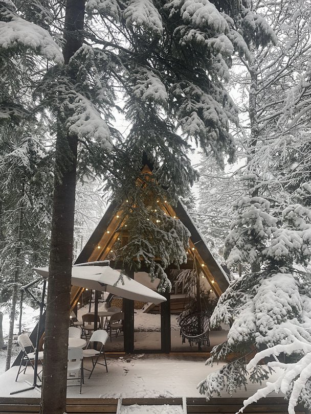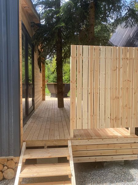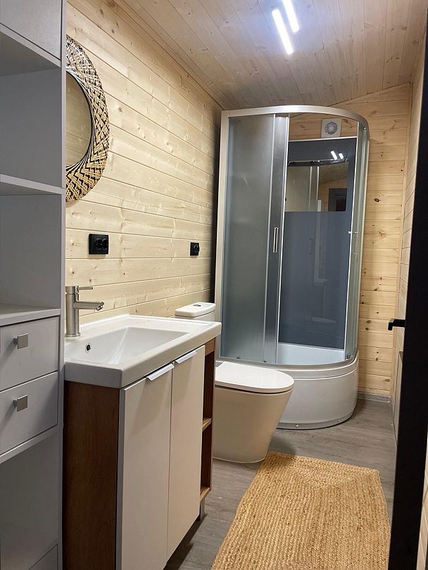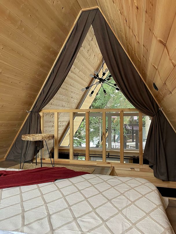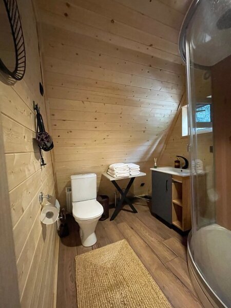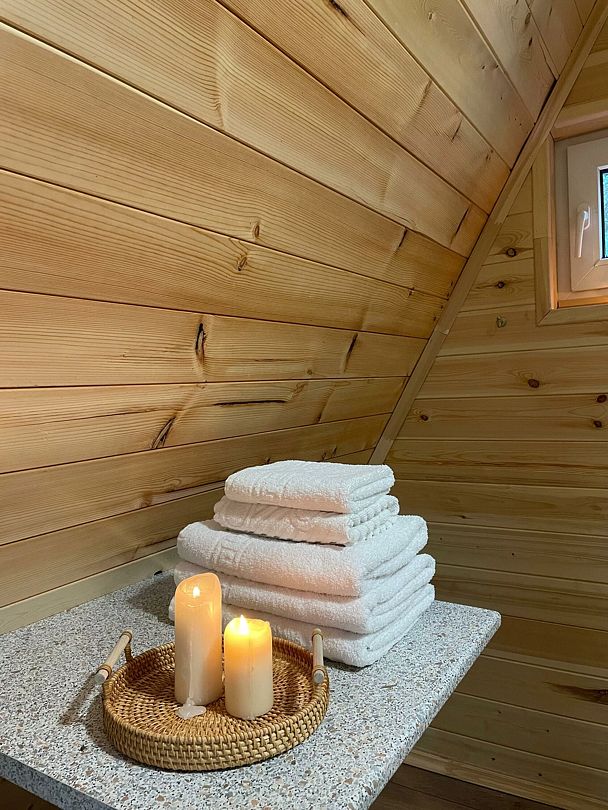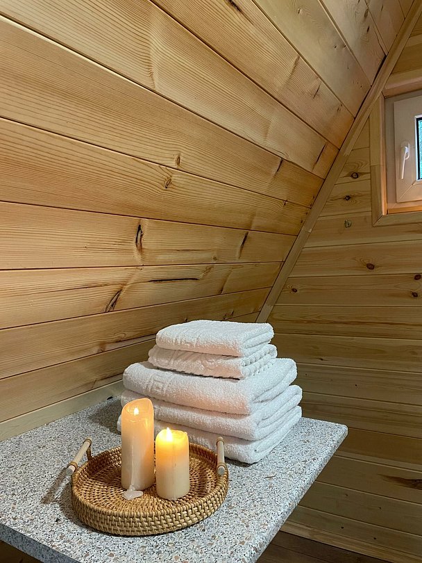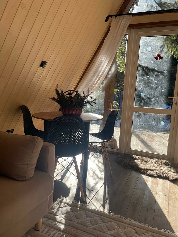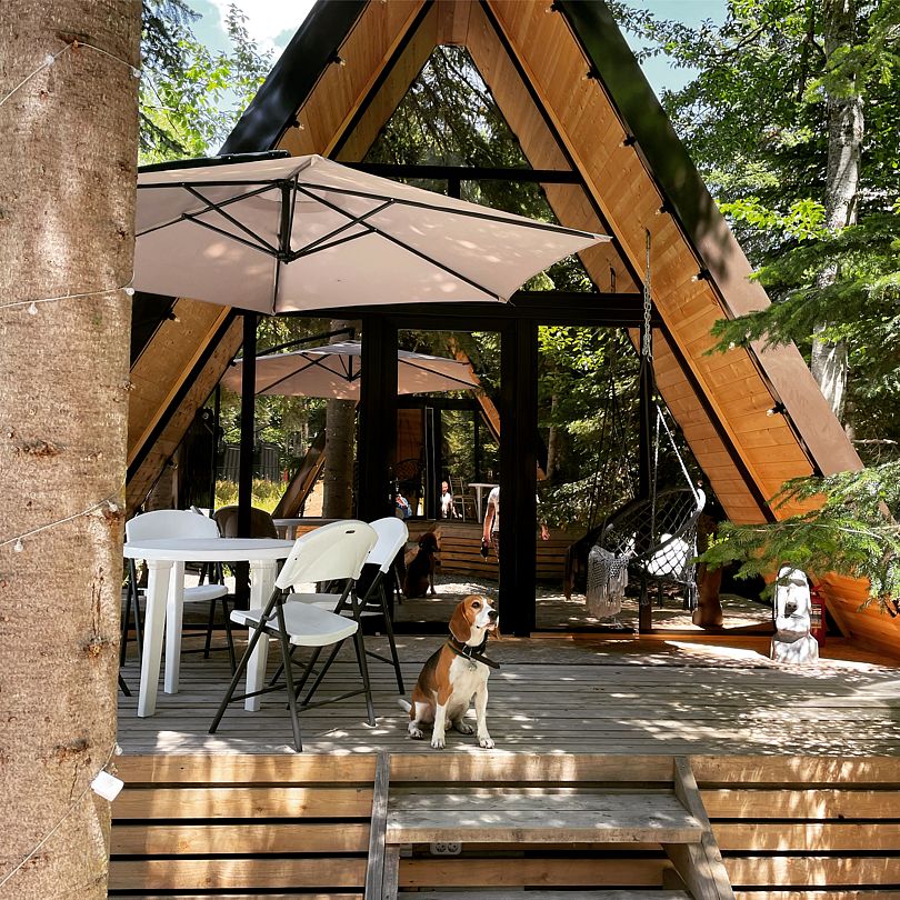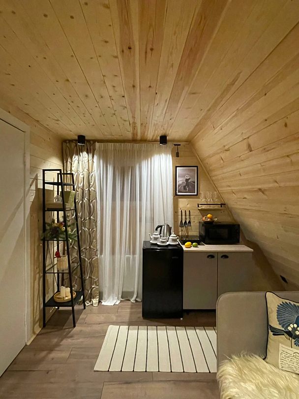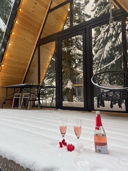 Комфортабельные домики оснащены всем необходимым для вашего беззаботного отдыха: телевизор, холодильник, микроволновка, индукционная плита, чайник, посуда и фен.