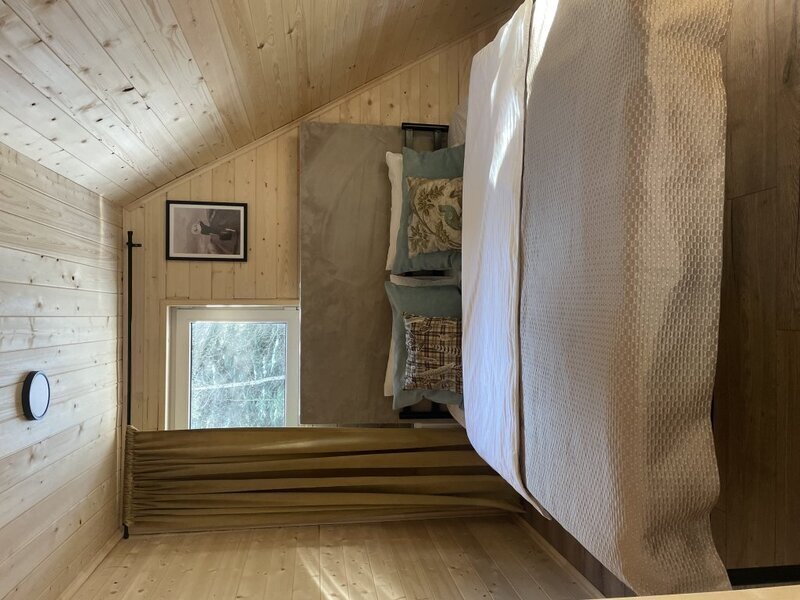 Двуспальный мягкий матрас на втором этаже.