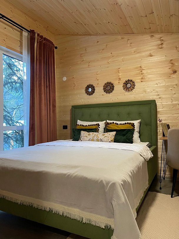 Четырёхместный коттедж Classic с красивым видом из окна