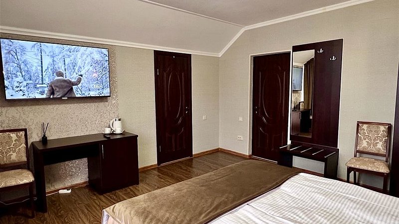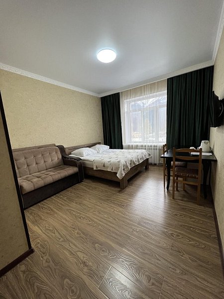 Вас ждут уютные и чистые номера различной вместимости, в которых с удобством можно отдохнуть после насыщенного дня. Из окон некоторых номеров открывается живописный вид на горные пейзажи.