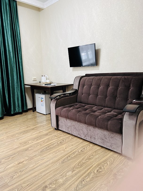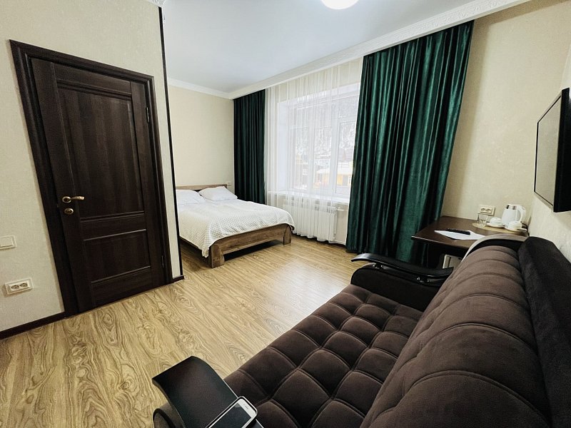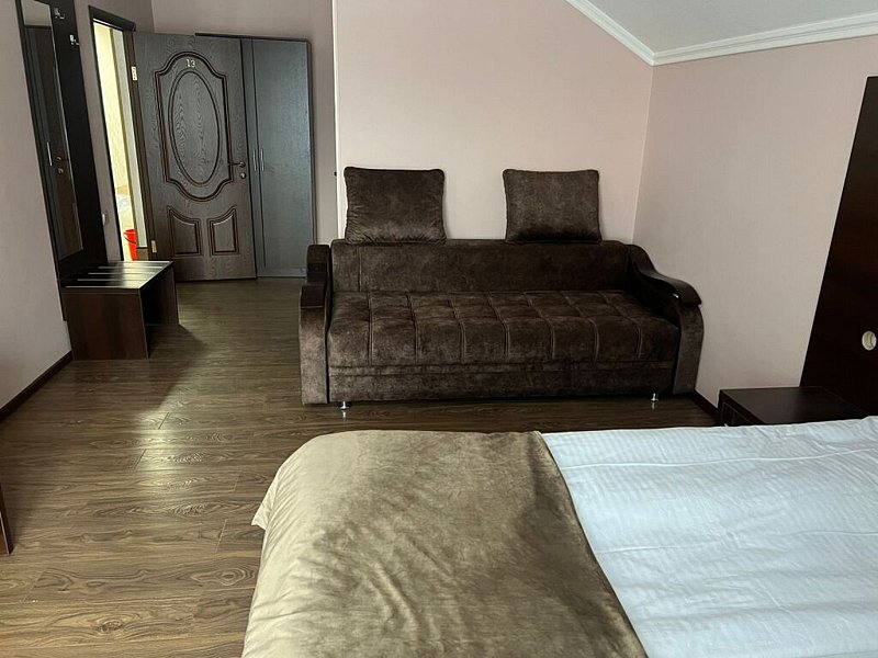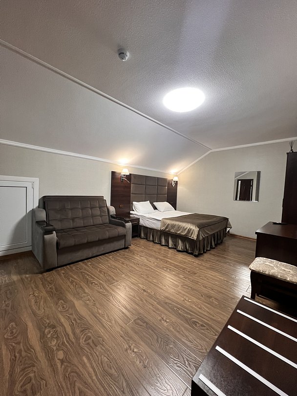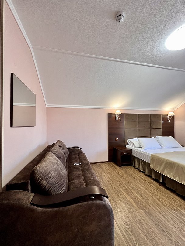 В номере двуспальная кровать + мягкий диван (раскладной).