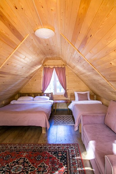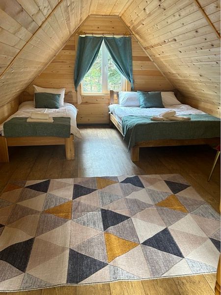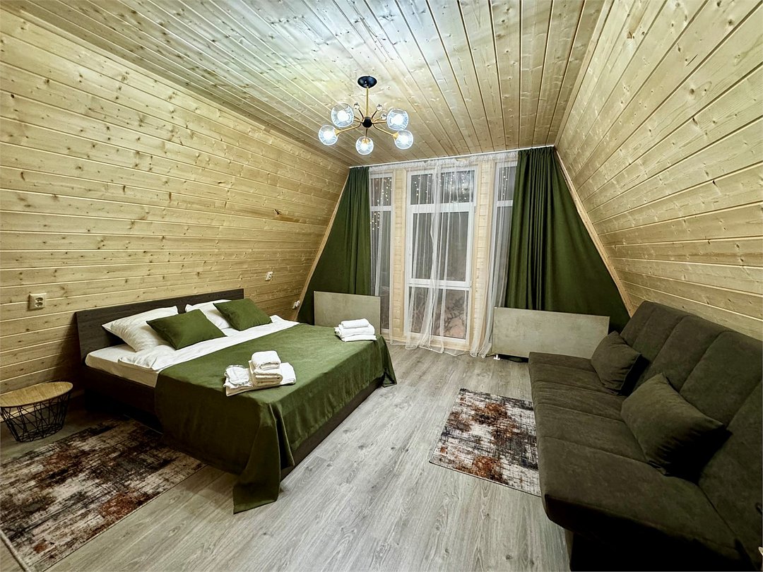 Комплекс находится в самом живописном месте в 100 метрах от реки София. Для размещения гостя предлагаются деревянные двухэтажные коттеджи, рассчитанные на 2, 4 или 6 человек. В каждом домике предусмотрены индивидуальный санузел с душем и мини-кухня (без варочной плиты), в комнатах – удобная мебель и плазменный телевизор.