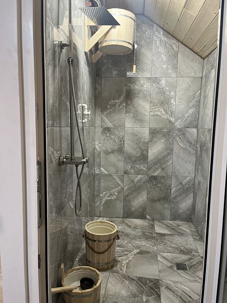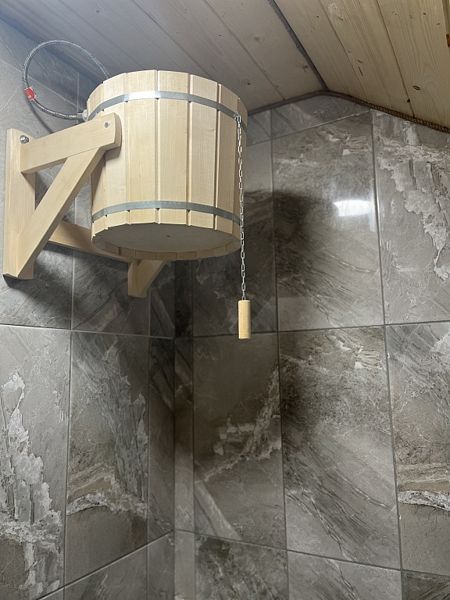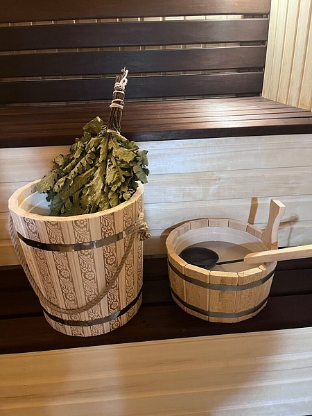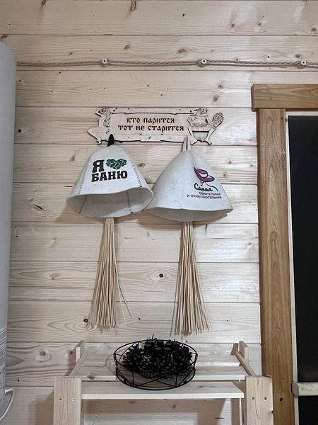 Инфраструктура: тапочки, зона отдыха, полотенца, шапочки, березовые веникиБаня на дровах, комната отдыха, парилка и душевая комната.