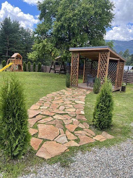 У каждого дома есть собственная мангальная площадка с казаном, шампурами мангалом и скамейкой для отдыха.