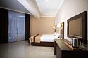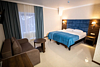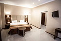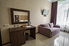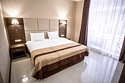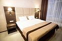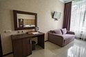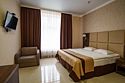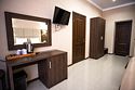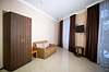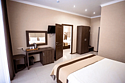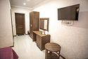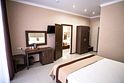 В этом номере вы найдете: двуспальную кровать на 2 человека с возможностью разъединения, диван кровать на 1-2 человека, так же шкаф для верхней одежды, две тумбочки, светильники над кроватью для ночного чтения, трельяж с зеркалом и встроенным мини\холодильником для мелких нужд и телевизор.