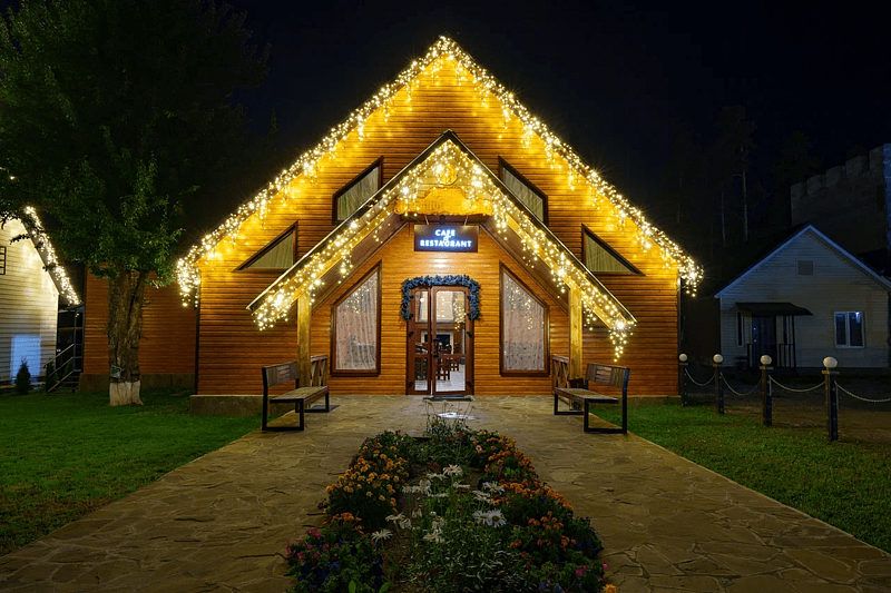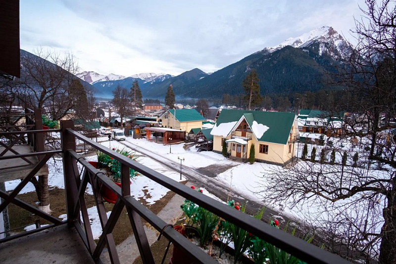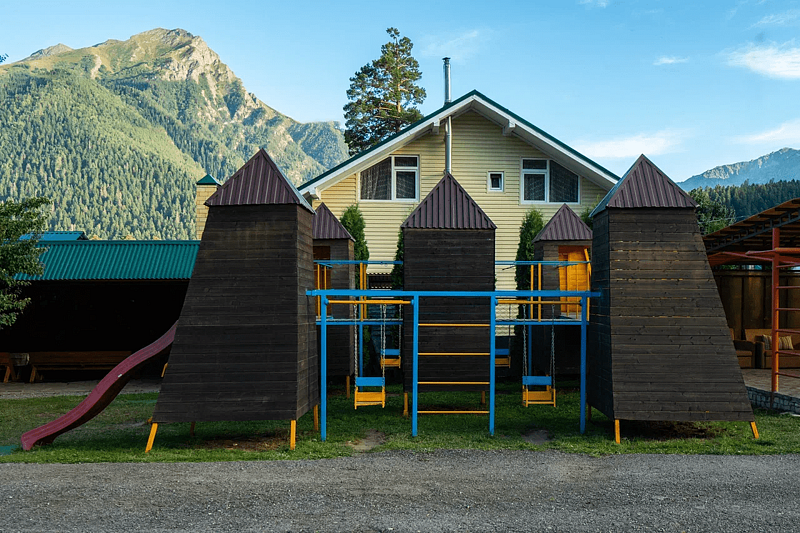 Гостевой дом расположен недалеко от центра поселка Архыз и представляет собой комплекс отдельно стоящих коттеджей, исполненных в альпийском стиле.