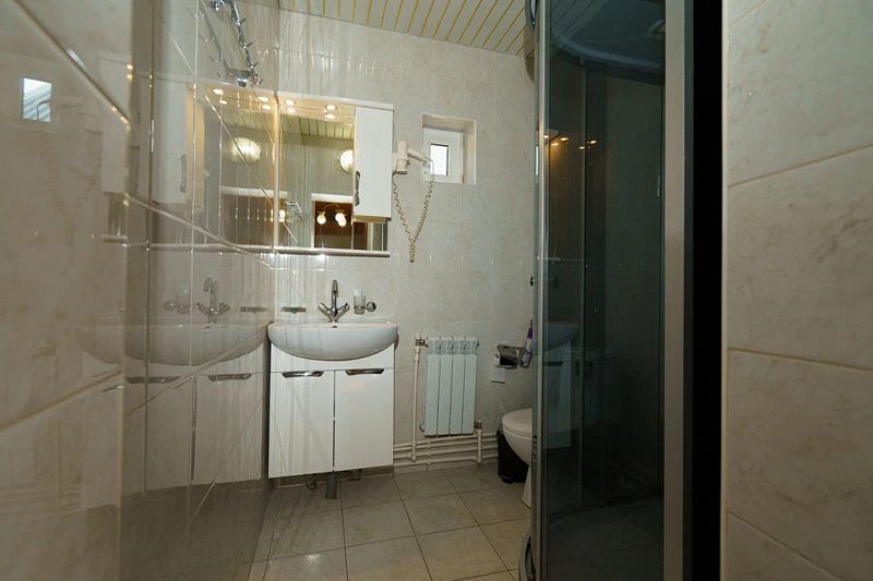 А также в коттедже есть: фен, тапочки, гель, шампунь, зубная щетка с пастой, мыло, полотенца трех типов (тело, лицо, ноги), туалетная бумага, освежитель воздуха.