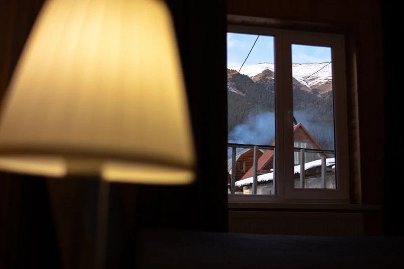 - на втором этаже панорамные окна над кроватями, с видом на звезды и горы.