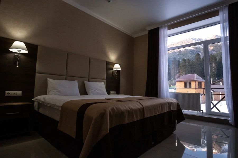 Путешествие с семьейОтель "Орлиное гнездо", АрхызОтличное место, рекомендую! Отдыхали семьей: 2 врослых и 2 детей. Номер чистый, просторный, свежий, большие окна и 2 балкона с потрясающим видом на горы. В номере большая еврокровать, оаскладной диван, чайник, кружки , холодильник. Санузел чистый с душевой кабиной. Территория отеля большая, много беседок, мангалоа, детская площадка. Бесплатный трансфер на горнолыжный комплекс туда и обратно, удобное время. Администратор вежливая, добрая, всегда рада помочь.