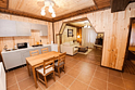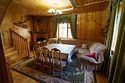 - обеденный стол из массива и стулья с мягкой обивкой.