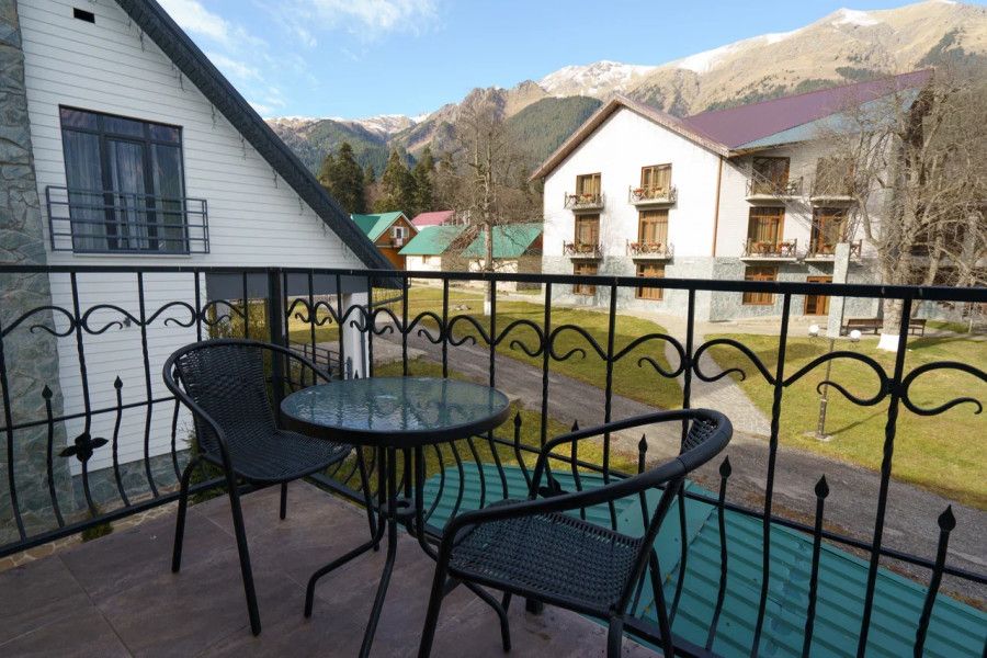 У данного номера есть свой балкон с видом на прекрасные горы, где можно посидеть в хорошую погоду и попить вкусный кофе.