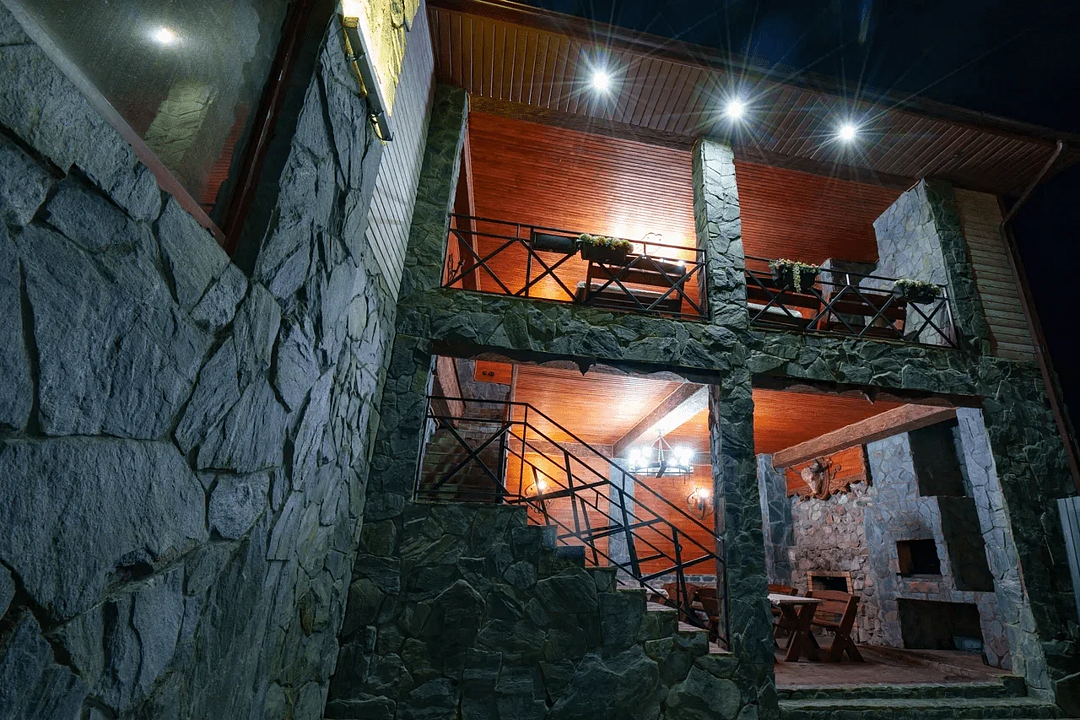 Также в распоряжении гостей ресторан на 60-70 посадочных мест, сушильная комната на 100 пар лыж и горнолыжной экипировки, крытая парковка, шесть крытых беседок для отдыха, двухэтажная мангальная зона с камином, детская площадка, спорт-площадка, качели под открытым небом у костра и многое другое.