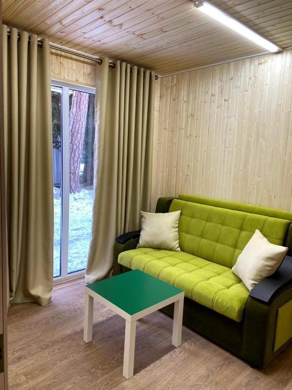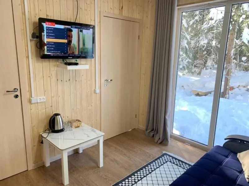 Тини-хауз расположен в лесной зоне, минимизируя визуальные и акустические раздражители. Умный дом с панорамным остеклением и мни террасой у входа. Внутри тини-хауса лаконичный комфорт: коммуникации (регулируемое электричество, горячая/холодная вода, теплые полы, электроштора, микроклимат, электрозамок, чайник, холодильник, санузел с ванной, фен, комплектация). Площадь номера 18-20 кв.м., возможно размещение 2х человека (2х спальная кровать 160Х200 или 2 две кровати 80Х200)