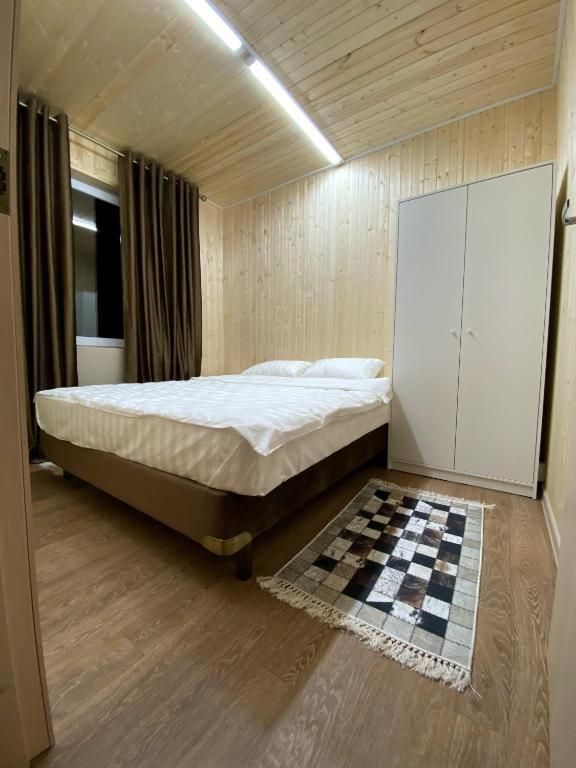 В номере: двуспальная кровать, телевизор, холодильник, стол, стулья, вешалка, чайник, санузел с душевой кабиной, мангальная зона возле дома.