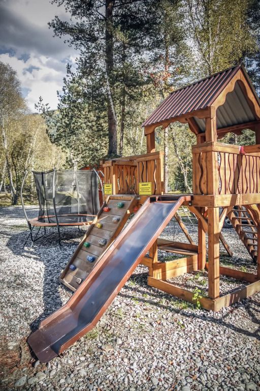 На территории базы отдыха доступны есть уютная беседка и оборудованная площадка для барбекю, что делает отдых еще более комфортным и приятным. Для любителей активного отдыха есть волейбольная сетка, а для юных гостей обустроена детская площадка.