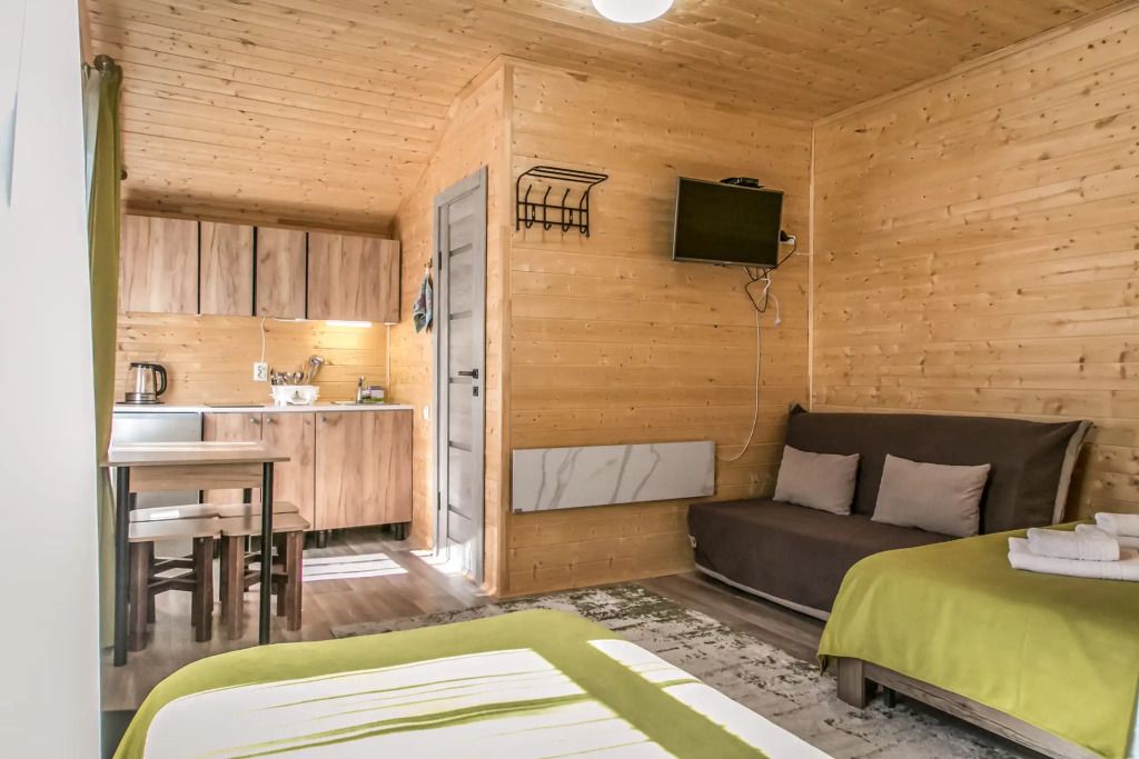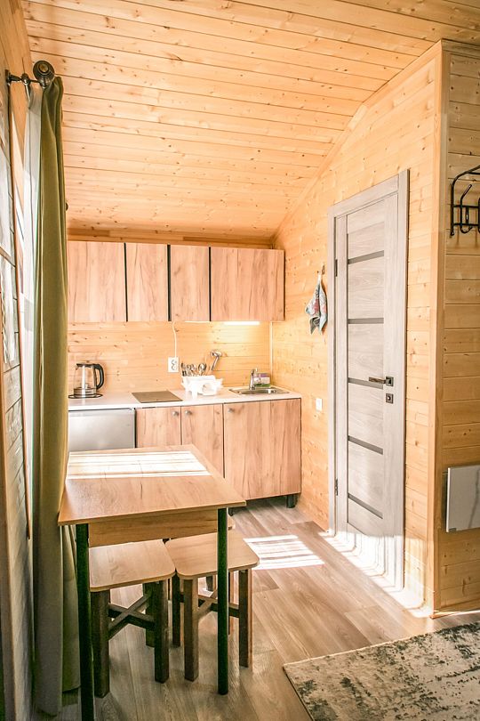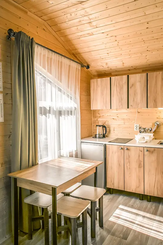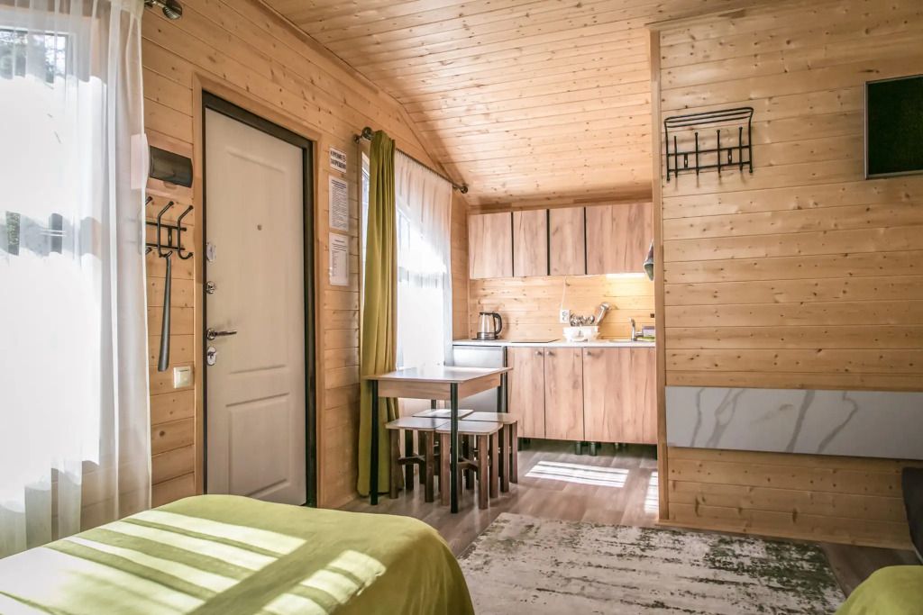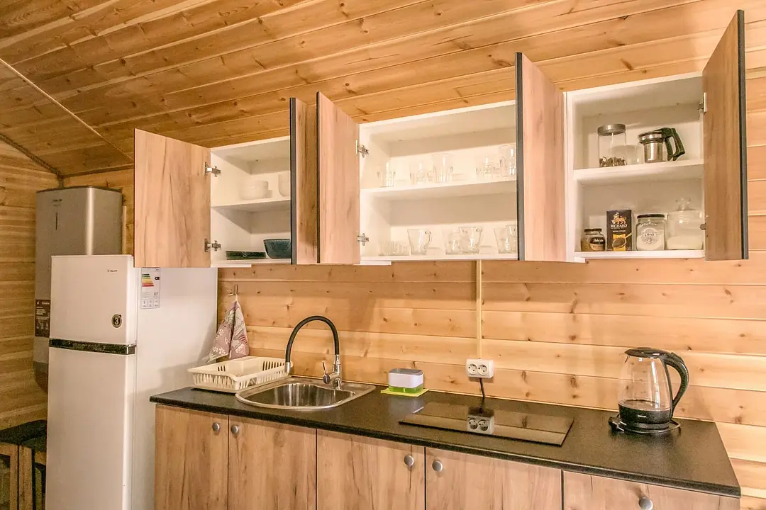 К вашему проживанию подготовлены уютные домики вместимостью от 5 до 12 человек. Все дома оснащены современными удобствами, включая Wi-Fi, собственную ванную комнату с гигиеническими принадлежностями, а также полностью оборудованную кухню.