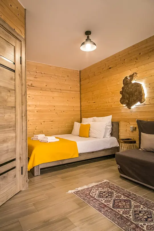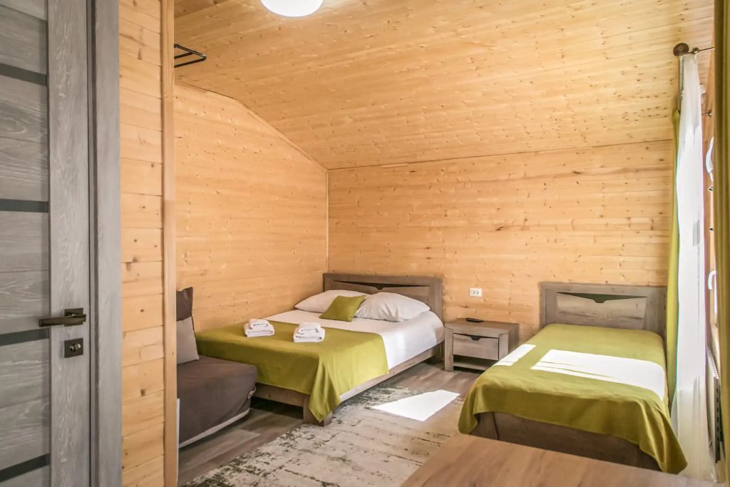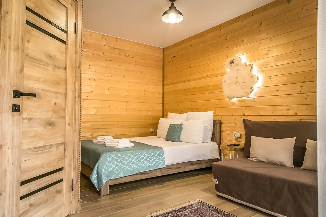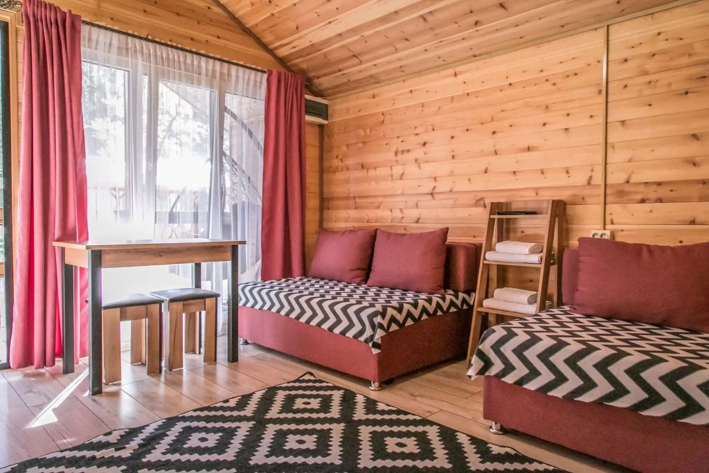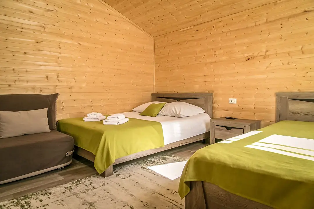 К вашему проживанию подготовлены уютные домики вместимостью от 5 до 12 человек. Все дома оснащены современными удобствами, включая Wi-Fi, собственную ванную комнату с гигиеническими принадлежностями, а также полностью оборудованную кухню.