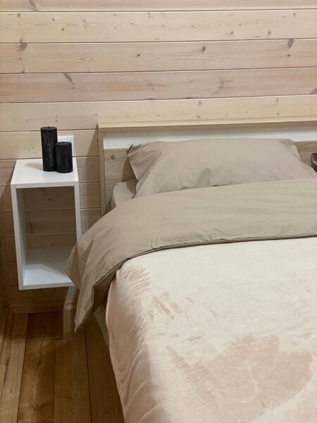 Домик с отдельной спальней и кухней-гостиной на четверых. Есть парковка на территории.