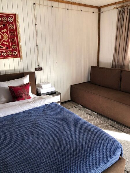 Путешествие с семьейОтличная база отдыхаПриезжали в январе, в праздничные дни в самые дорогие дни в Архызе. Скажу одно ,что порадовало отношение хозяев (Диана и Ислам ,спасибо большое за гостеприимство)к гостям и самое главное чистота в домике. Отдыхали в самом бюджетном варианте домиков,в стандарте.Все оказалось очень приличным.Сразу скажу, домик стандарт без излишеств(он самый недорогой из всех категорий), но самое главное есть все самое необходимое, там есть ванная комната, холодильник,телевизор, эл.чайник и минимальный набор посуды. Наверное в наше время такого набора нет даже в стандартных номерах отеля, по крайней мере я не встречала в номерах по данной ценовой категории свой холодильник и чайник. В общем то удобно, чайку попить и перекусить самое то. Скажу ,что побывав в многих турбазах и отелях Архыза, сюда бы однозначно я ещё раз приехала, хотя бы ради того что там очень спокойно и тихо, и явно хозяева явно следят за порядком на территории.