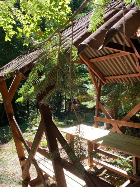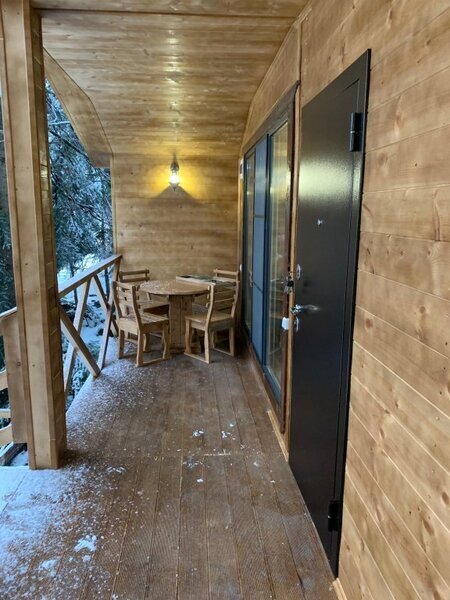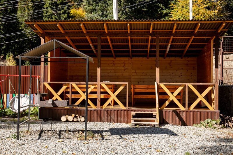 На краю леса, за каждым домиком, находятся комфортные беседки — настоящая находка для любителей отдыха на свежем воздухе. Здесь вы сможете расслабиться и восхититься красотой природы, наслаждаясь уединением и спокойствием в уютной обстановке.