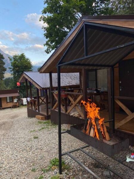 Все варианты размещения оборудованы кухней и всем необходимым для комфортного отдыха, что создает атмосферу уюта в окружении горных пейзажей. Рядом с каждым домиком расположена собственная зона для барбекю, где вы можете насладиться приготовлением шашлыков и других любимых блюд на гриле.