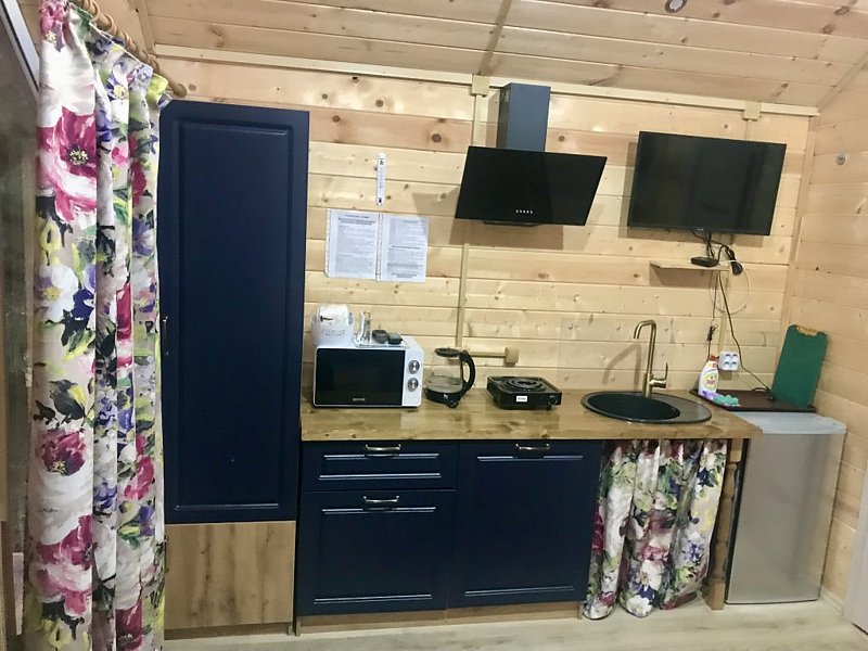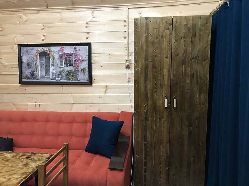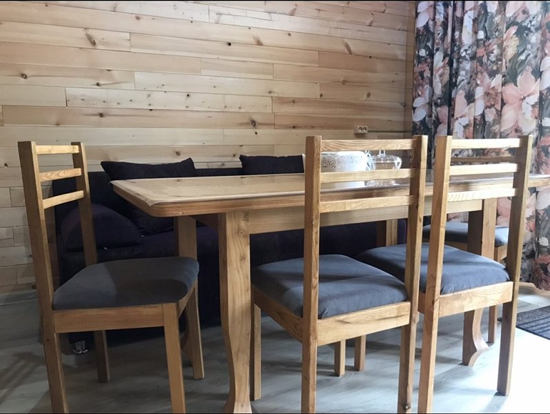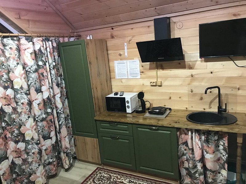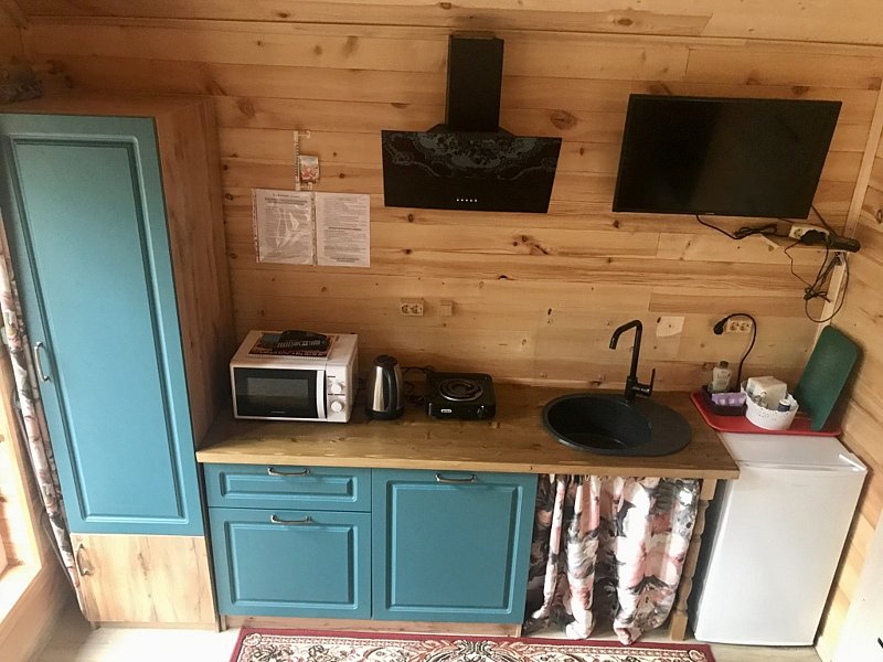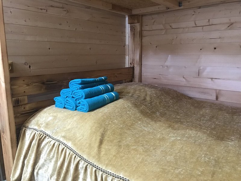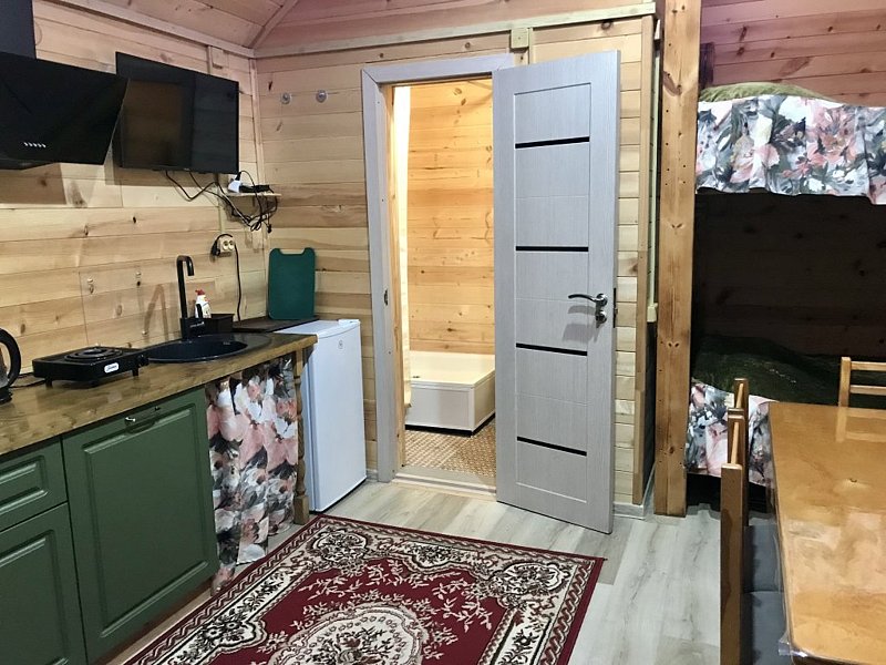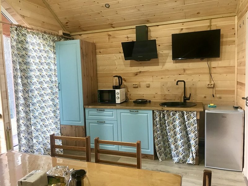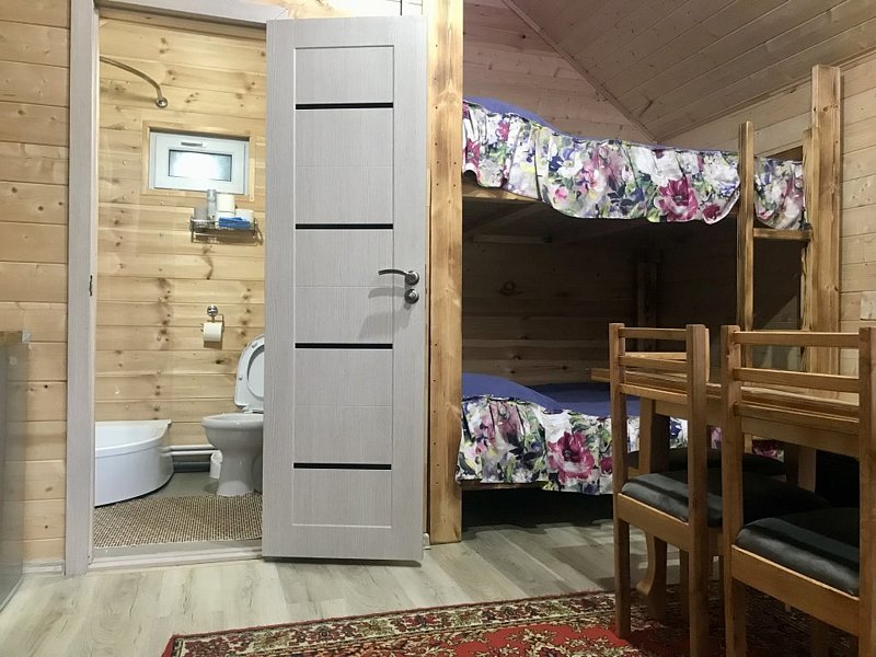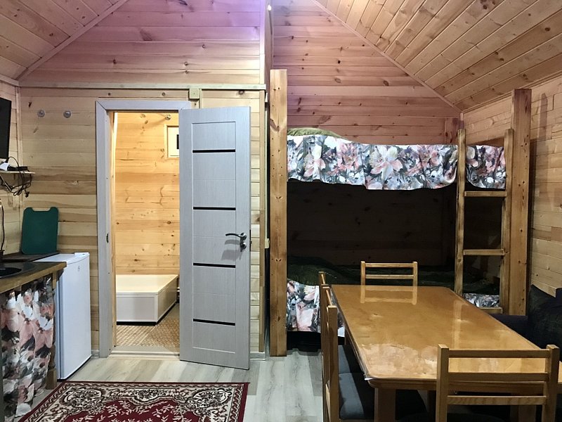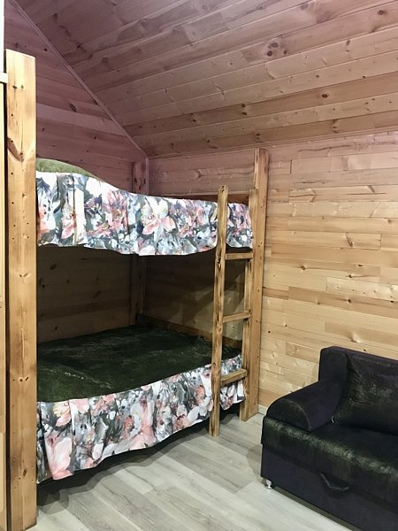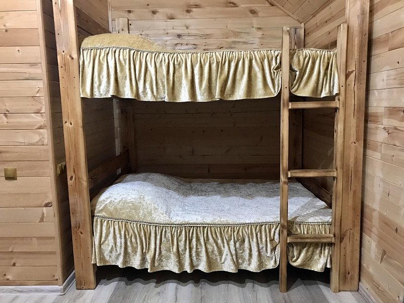 Две двухъярусные деревянные кровати установлены в два яруса, раскладной диван, кухня, х, с/у, фен, ТВ, wi-fi, мангальная зона