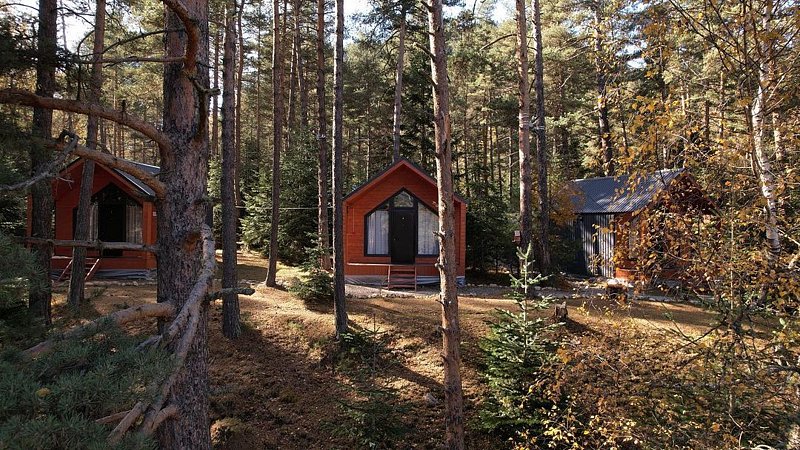 Всего представлено 5 уютных коттеджей, оснащённых всем необходимым для комфортног отдыха. Дома, террасы и территория освещаются.
