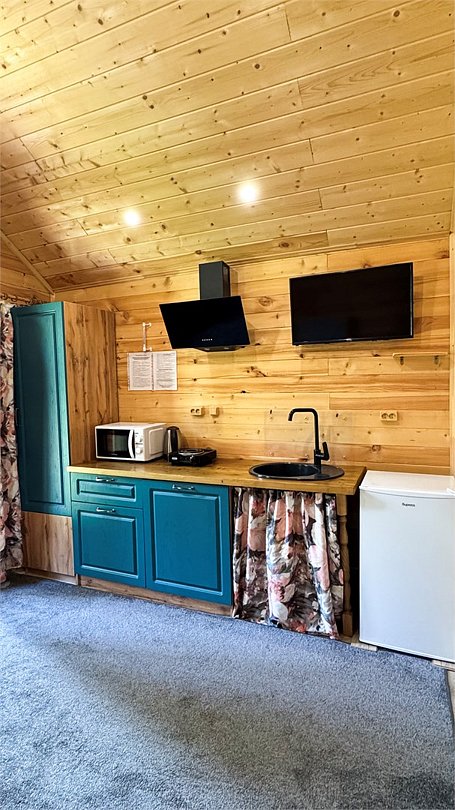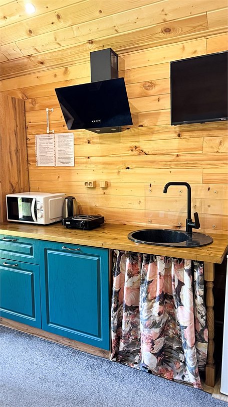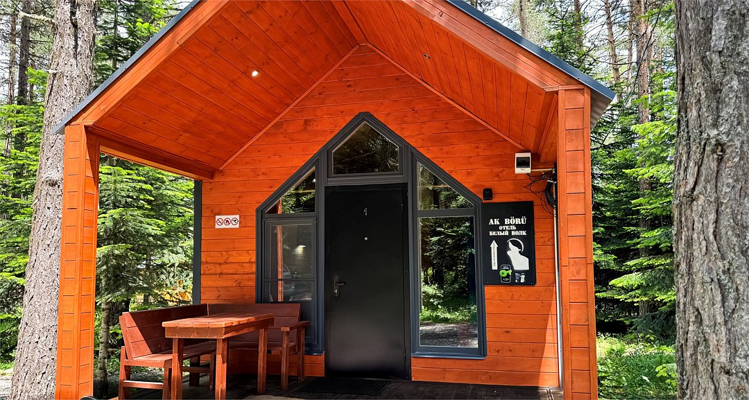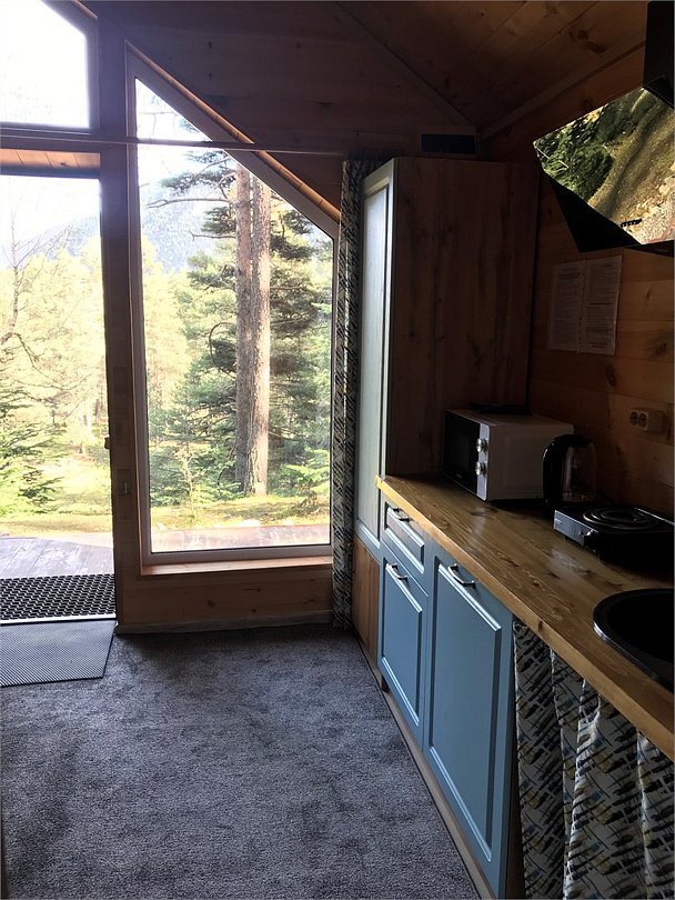 Живописная природа, кристально чистая вода, воздух, напоённый ароматами хвои и трав. Летом: ледниковые озёра, водопады, нарзаны, сплавы по реке, джиппинг, конные прогулки, квадроциклы. Осенью: багряные реликтовые леса, настоящий рай для грибников. Зимой: попасть в снежную сказку, покататься на лыжах, сноуборде, снегоходе. Весной: место силы для всех, кто приезжает сюда подышать целебной сосновой пыльцой. Незабываемый отдых в красивейшем районе Архыза, в самом сердце Софийской поляны, в изумрудном лесу, на склоне горы, с которой открывается необыкновенный вид. На территории турбазы "Белый волк" пять четырёхместных номеров (шале). Все дома однокомнатные: студия 30м2 с собственной кухней, с/узлом. Высокие потолки, панорамные окна. Три номера с потрясающим видом на горы, два - с видом на лес. Дома и территория оборудованы всем необходимым для комфортного проживания. Подробнее о шале 5: Дом оснащен панорамными окнами, из которых открывается потрясающий вид на горы. Оборудован всем необходимым для комфортного проживания. Дом, терасса, а так же территория освещаются. Установлены электрические обогреватели, водонагреватель. Плотные шторы, покрывала, пастельные принадлежности, наборы полотенец, тапочки. Две двухъярусные деревянные кровати, установлены в два яруса. Высокие потолки. Ортопедические матрасы с размерами спальных мест 160 х 200 см каждый. Гипоаллергенные одеяла, подушки. Как дополнительные спальные места - раскладной диван с размерами 140 х 200 см. Кухня с мойкой, бытовой техникой, необходимой посудой: холодильник, электрическая плита, вытяжка, микроволновая печь, электрический чайник. Обеденный стол, стулья. Платяной шкаф. VV, интернет Ростелеком, Wi-Fi. Собственный с/узел с душевой зоной. Фен. Сушилка для белья. Утюг и гладильная доска - по запросу. На территории собственная парковка, большая беседка, мангальная зона с принадлежностями для барбекю. В 200м расположен комплекс бань, купели, кафе, прокат снаряжения, снегоходов, квадроциклов, лошадей, экскурсии на УАЗах, услуги трансфера. В 400м центральный рынок, речка, ферма алльпак и лемуров, в 750м ближайший ресторан, диско-бар, в 2км ближайший супермаркет, в 6км расположены подъёмникки, аптека, автозаправка.Услуги и удобства