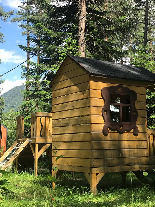 Живописная природа, кристально чистая вода, воздух, напоённый ароматами хвои и трав. Летом: ледниковые озёра, водопады, нарзаны, сплавы по реке, джиппинг, конные прогулки, квадроциклы. Осенью: багряные реликтовые леса, настоящий рай для грибников. Зимой: попасть в снежную сказку, покататься на лыжах, сноуборде, снегоходе. Весной: место силы для всех, кто приезжает сюда подышать целебной сосновой пыльцой. Незабываемый отдых в красивейшем районе Архыза, в самом сердце Софийской поляны, в изумрудном лесу, на склоне горы, с которой открывается необыкновенный вид. На территории базы отдыха "Белый вок" пять четырёхместных номеров (шале). Все дома однокомнатные: студия 30м2 с собственной кухней, с/узлом. Высокие потолки, панорамные окна. Три номера с потрясающим видом на горы, два - с видом на лес. Дома и территория оборудованы всем необходимым для комфортного проживания. Подробнее о шале 2: Дом оснащен панорамными окнами, из которых открывается потрясающий вид на лес. Оборудован всем необходимым для комфортного проживания. Дом, терасса, а так же территория освещаются. Установлены электрические обогреватели, водонагреватель. Плотные шторы, покрывала, пастельные принадлежности, наборы полотенец, тапочки. Две двуспальные деревянные кровати установлены в два яруса. Высокие потолки. Ортопедические матрасы с размерами спальных мест 160 х 200 см каждый ярус. Гипоаллергенные одеяла, подушки. Как дополнительные спальные места - раскладной диван с размерами 140 х 200 см. Кухня с мойкой, бытовой техникой, необходимой посудой: холодильник, электрическая плита, вытяжка, микроволновая печь, электрический чайник. Обеденный стол, стулья. Платяной шкаф. TV и Wi-Fi от Ростелеком. Собственный с/узел с душевой зоной, фен. Сушилка для белья. Утюг и гладильная доска - по запросу. На террасе дома - садовая мебель. На территории собственная парковка, большая беседка, мангальная зона с принадлежностями для барбекю, детская игровая площадка, зона отдыха, качели. В 200м расположены комплекс бань, купели, несколько кафе, прокат снаряжения, снегоходов, квадроциклов, лошадей, экскурсии на УАЗах, услуги трансфера. В 400м центральный рынок, речка, ферма альпак и лемуров, детские аттракционы, в 750м ближайший ресторан, диско-бар, в 2км ближайший супермаркет, в 6км расположены подъёмники, аптека, автозаправка.Услуги и удобства