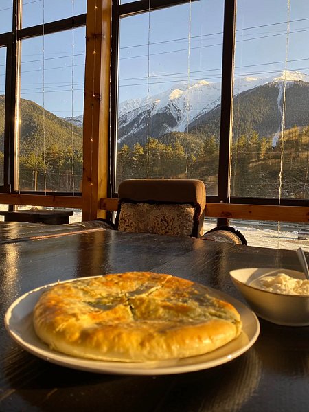 В уютном ресторане с видом на горы вы можете попробовать блюда только из качественных, натуральных продуктов местного происхождения, приготовленные по традиционным Кавказским и Европейским рецептам с современным подходом и фирменной подачей.