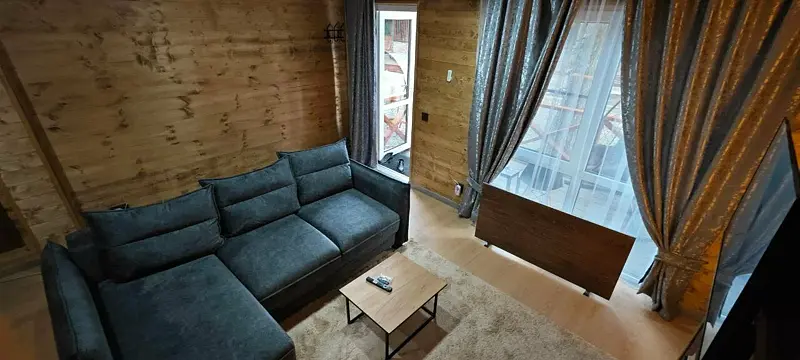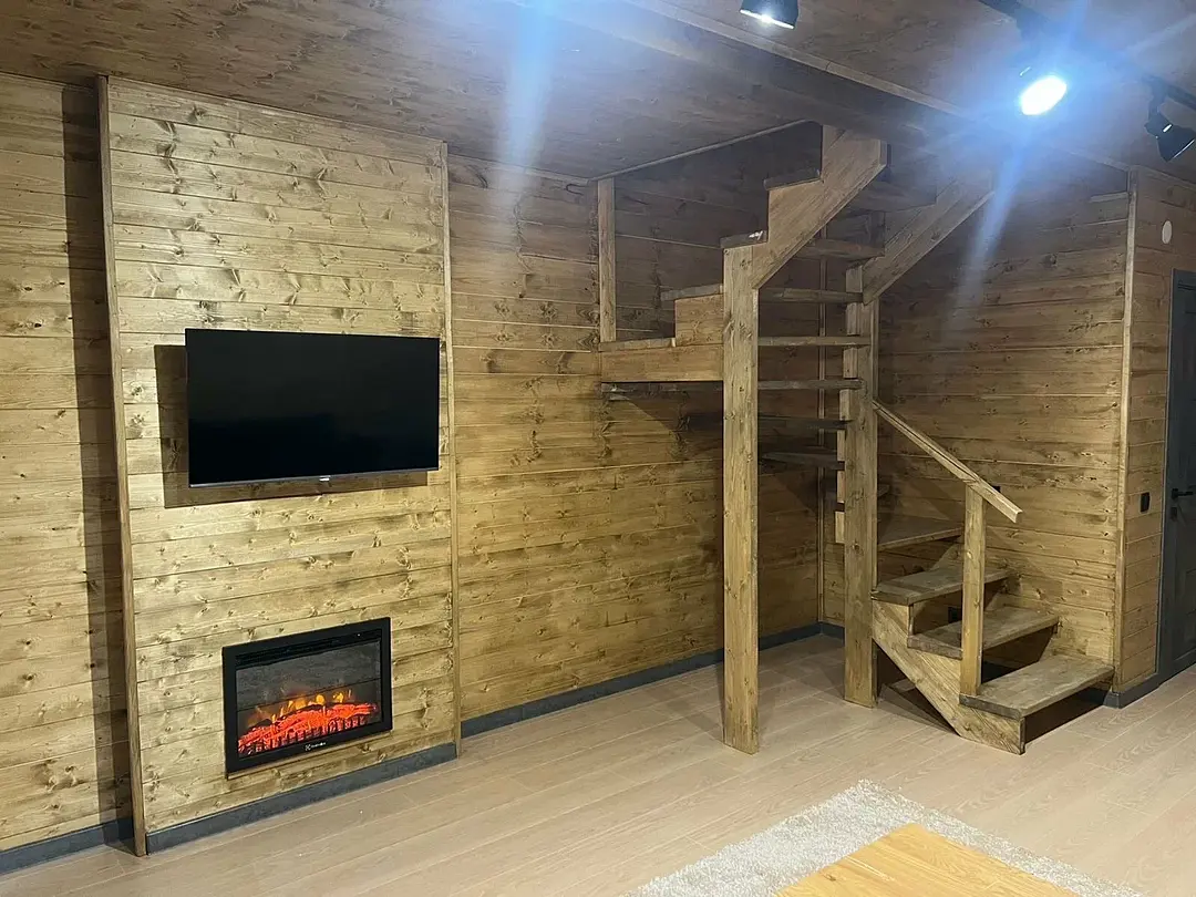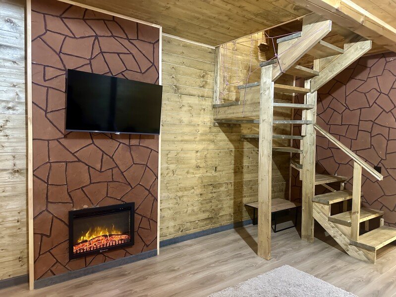 - Гостиная: двуспальный диван, камин, телевизор, WiFi.