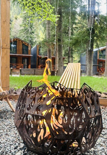 - Мангальная зона и беседка у каждого домика (шампуры и казан есть).